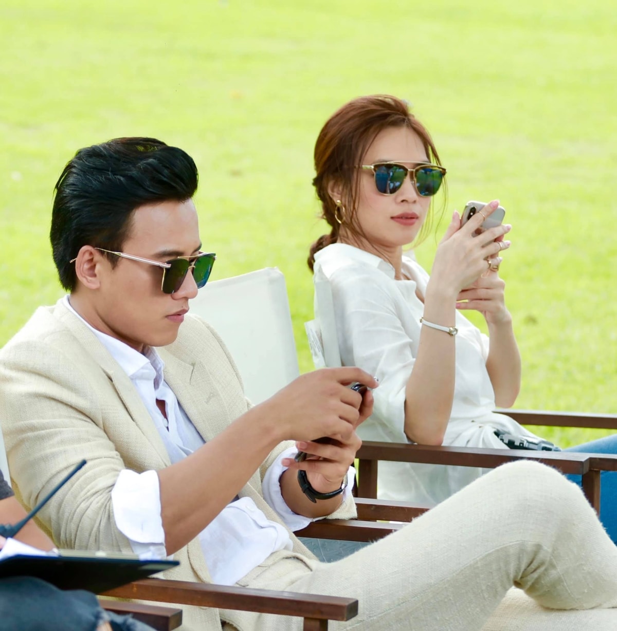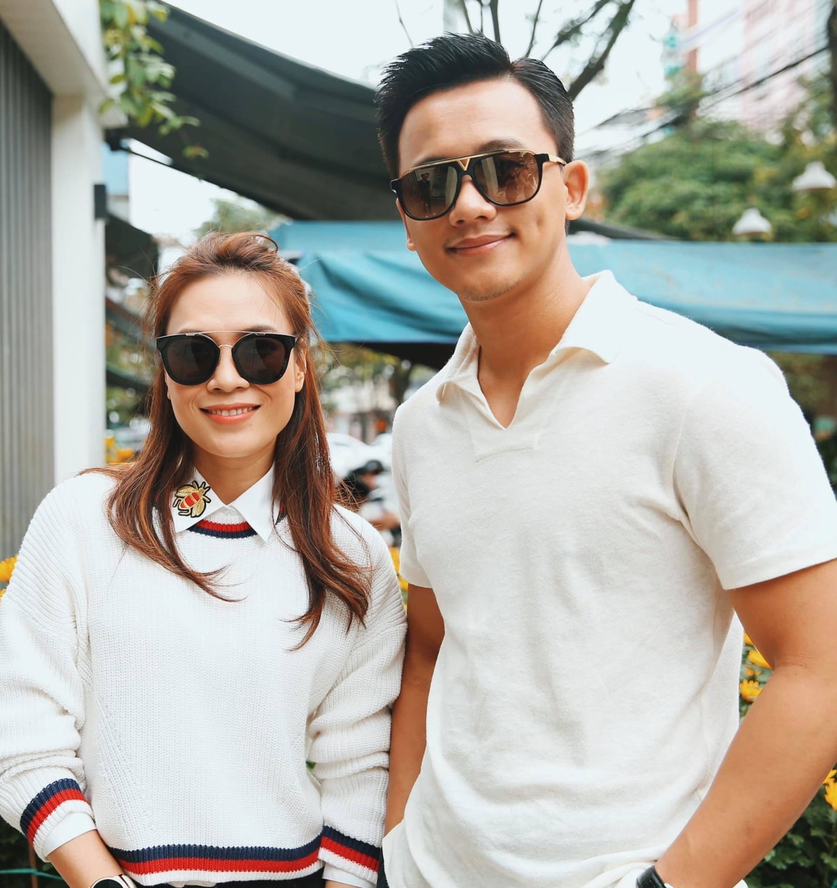 Trắng và đen là màu ưa chuộng của cả hai. Họ tạo vẻ hiện đại, năng động bằng phụ kiện mắt kính. Cả hai đều tránh các chi tiết trang trí nổi bật giúp hình ảnh khi đứng cạnh nhau cân bằng.