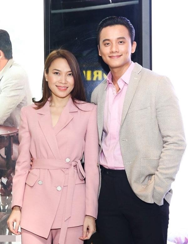 Tại một sự kiện, ca sĩ diện bộ suit hồng phấn dáng quấn, thiết kế thắt eo giúp tôn dáng. Trong khi đó, Mai Tài Phến phối blazer tông be sáng cùng sơ mi hồng nhạt, kết hợp quần tối màu.