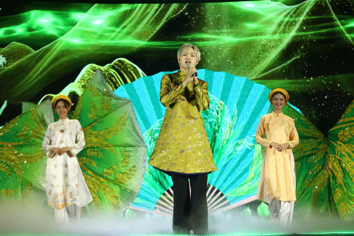 Hòa Minzy diện trang phục do nhà mốt Cao Minh Tiến thực hiện, lấy cảm hứng văn hóa truyền thống như yếm, áo tứ thân, khăn mỏ quạ. Cô biểu diễn Bắc Bling cùng vũ công và đoàn múa lân.