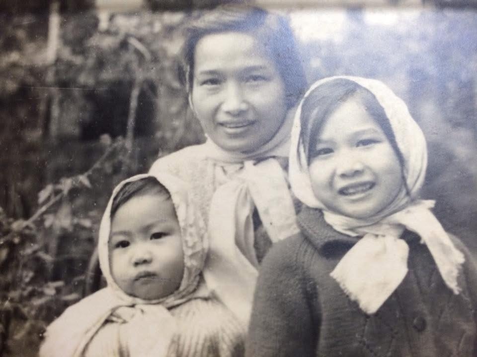 Hiền Mai (trái) bên mẹ và chị lúc một tuổi. Cô sinh ra và lớn lên ở TP HCM, trong gia đình nghèo.