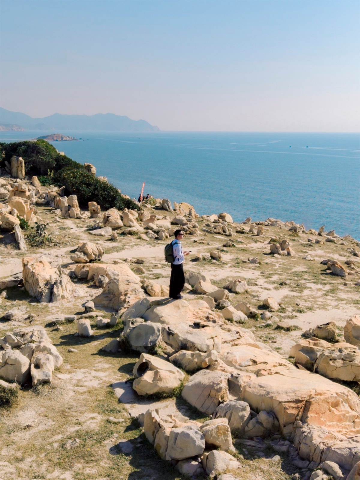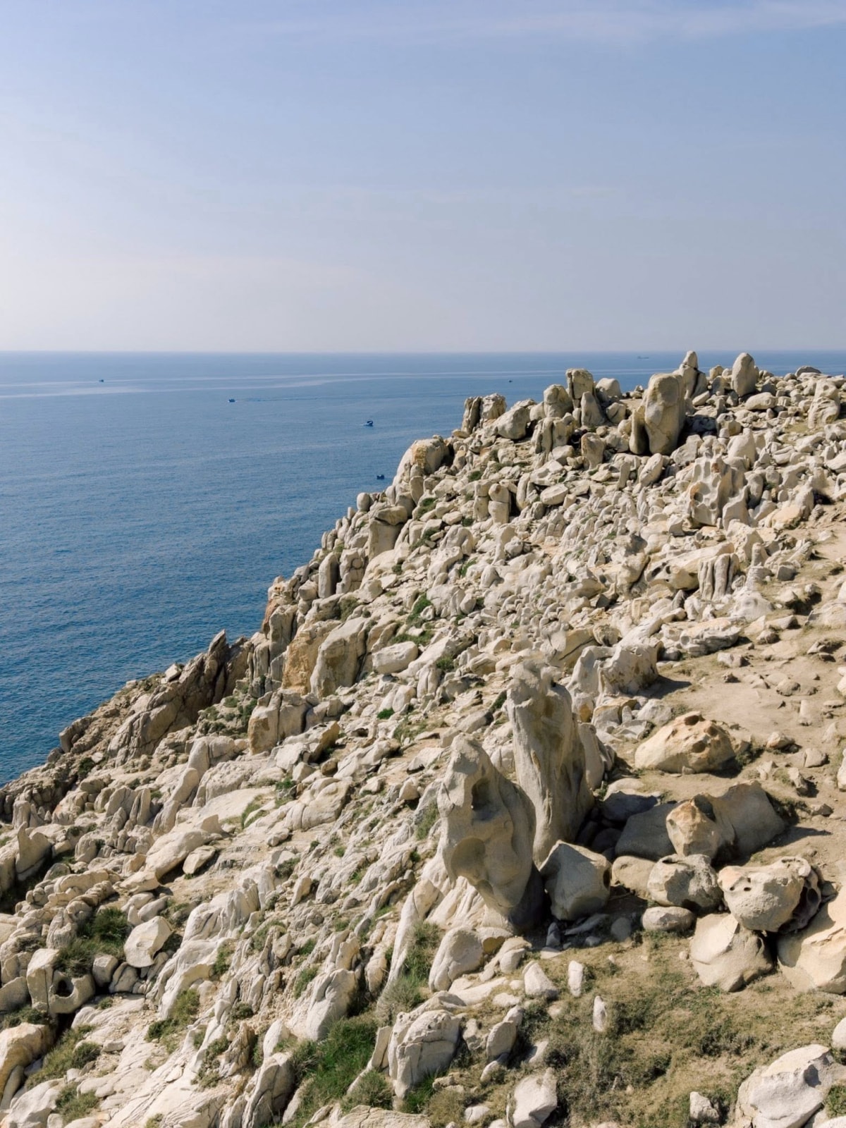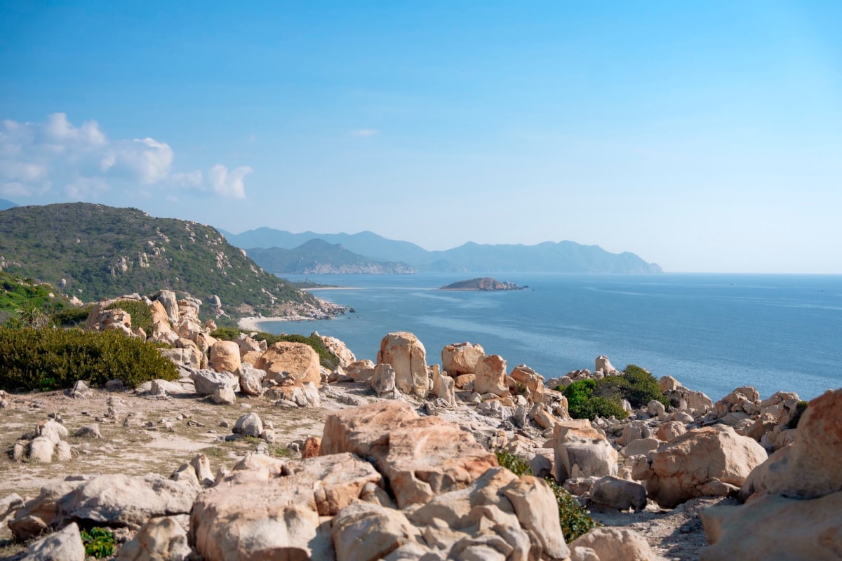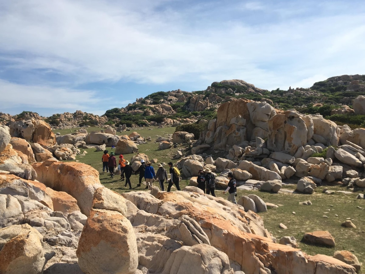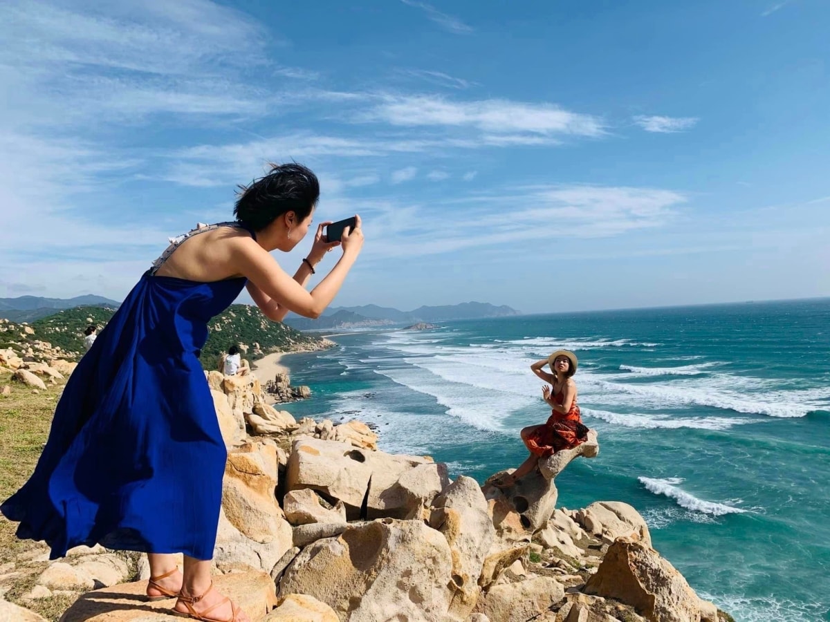 Du khách yêu thiên nhiên tìm đến công viên đá tại Ninh Thuận để chiêm ngưỡng những khối đá tự nhiên nhiều hình thù, kích thước xếp chồng lên nhau bên bờ biển hoang sơ.
