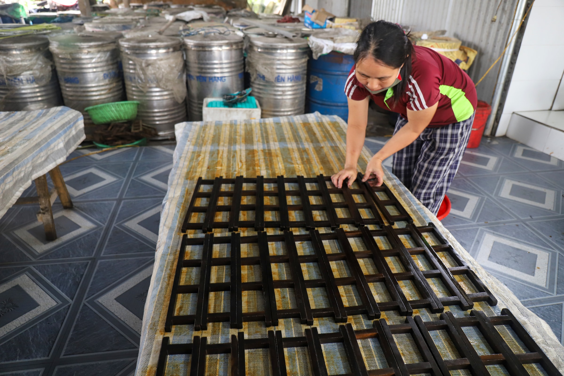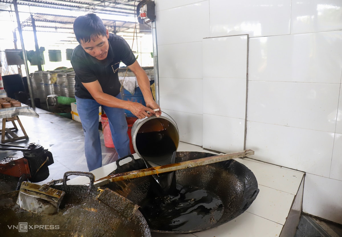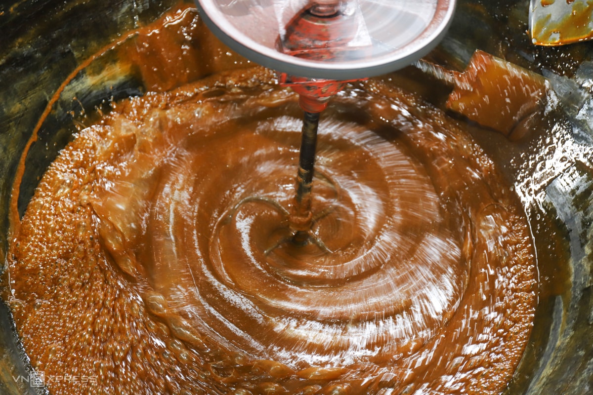 Anh Yên cho hay công đoạn nấu mật là quan trọng nhất. Thời gian cần phải được căn chuẩn, nếu sơ ý để mật cháy thì sẽ kém chất lượng.