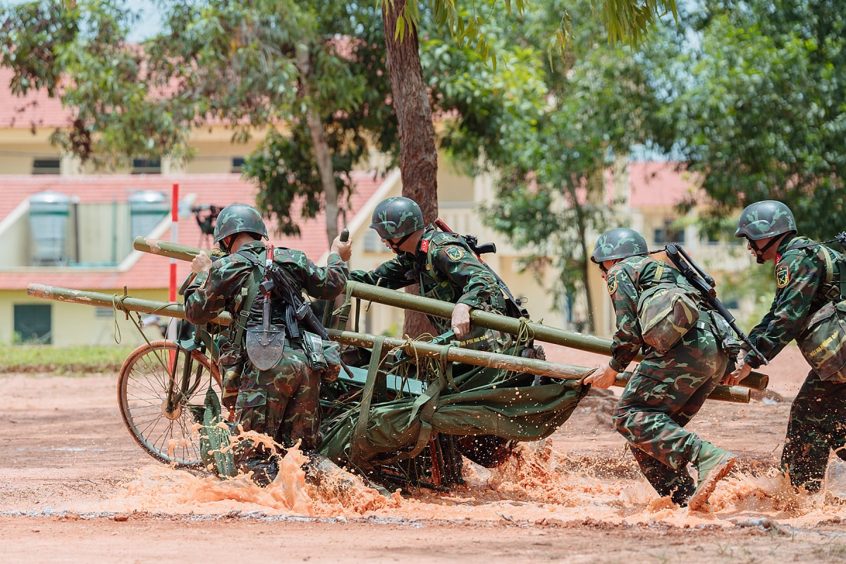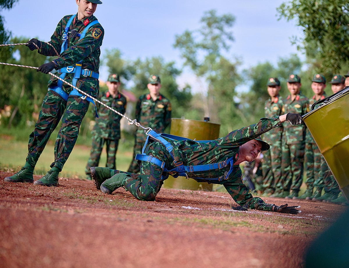Mạc Văn Khoa cùng đồng đội được huấn luyện vận dụng tư thế chiến trường, cơ động vượt qua vật cản, đánh bộc phá.