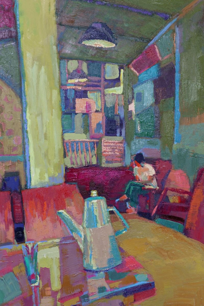 Là cựu sinh viên Trường Đại học Mỹ thuật Việt Nam, tốt nghiệp năm 2020, nghệ sĩ Cao Văn Thục được biết đến với những tác phẩm giàu tính nhân văn và chiều sâu cảm xúc. Trong tác phẩm “Gắn kết tạm thời”, anh khắc họa hình ảnh một nhóm người lao động chen chúc trên thùng xe tải.