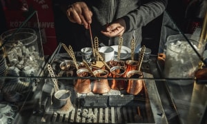 Để có trải nghiệm đích thực, du khách nên tìm những quán pha cà phê bằng "cezve" trên cát nóng. Một tách cà phê đúng chuẩn phải được phục vụ nóng hổi, lớp bọt dày mịn, đi kèm một ly nước lọc và một viên kẹo dẻo "lokum" để cân bằng vị đắng.