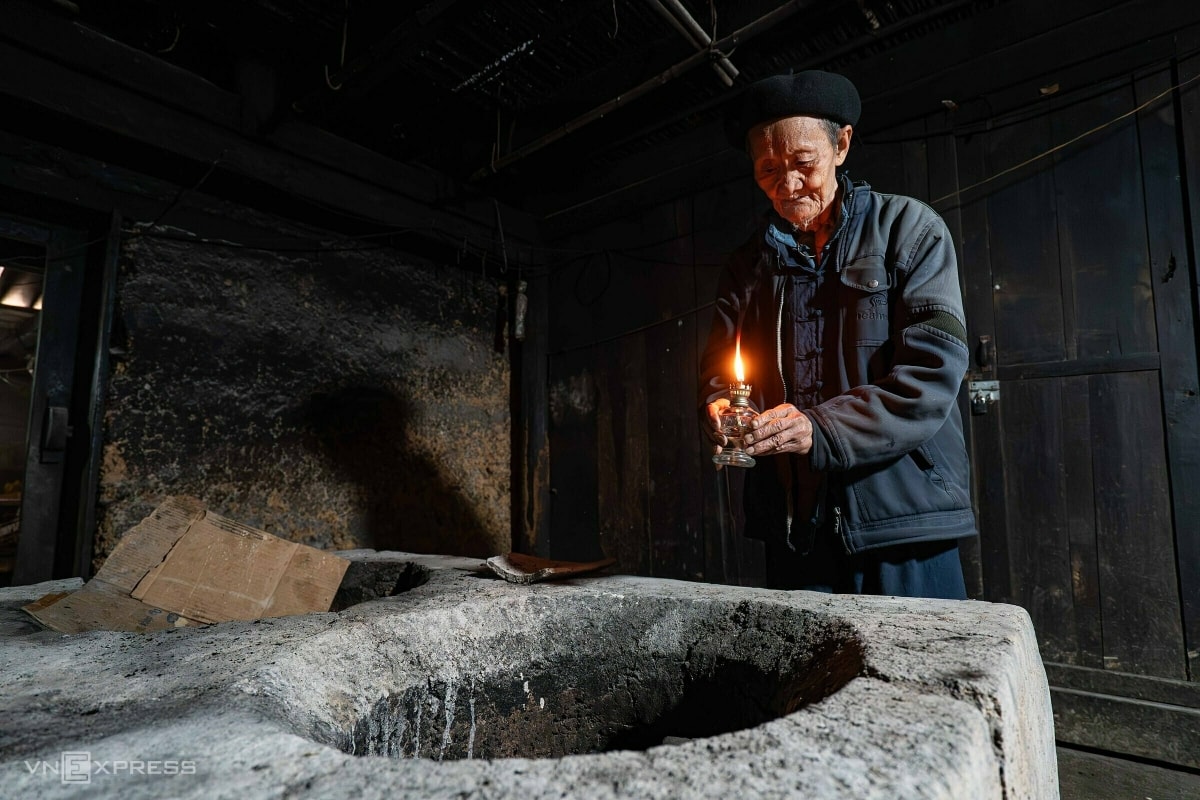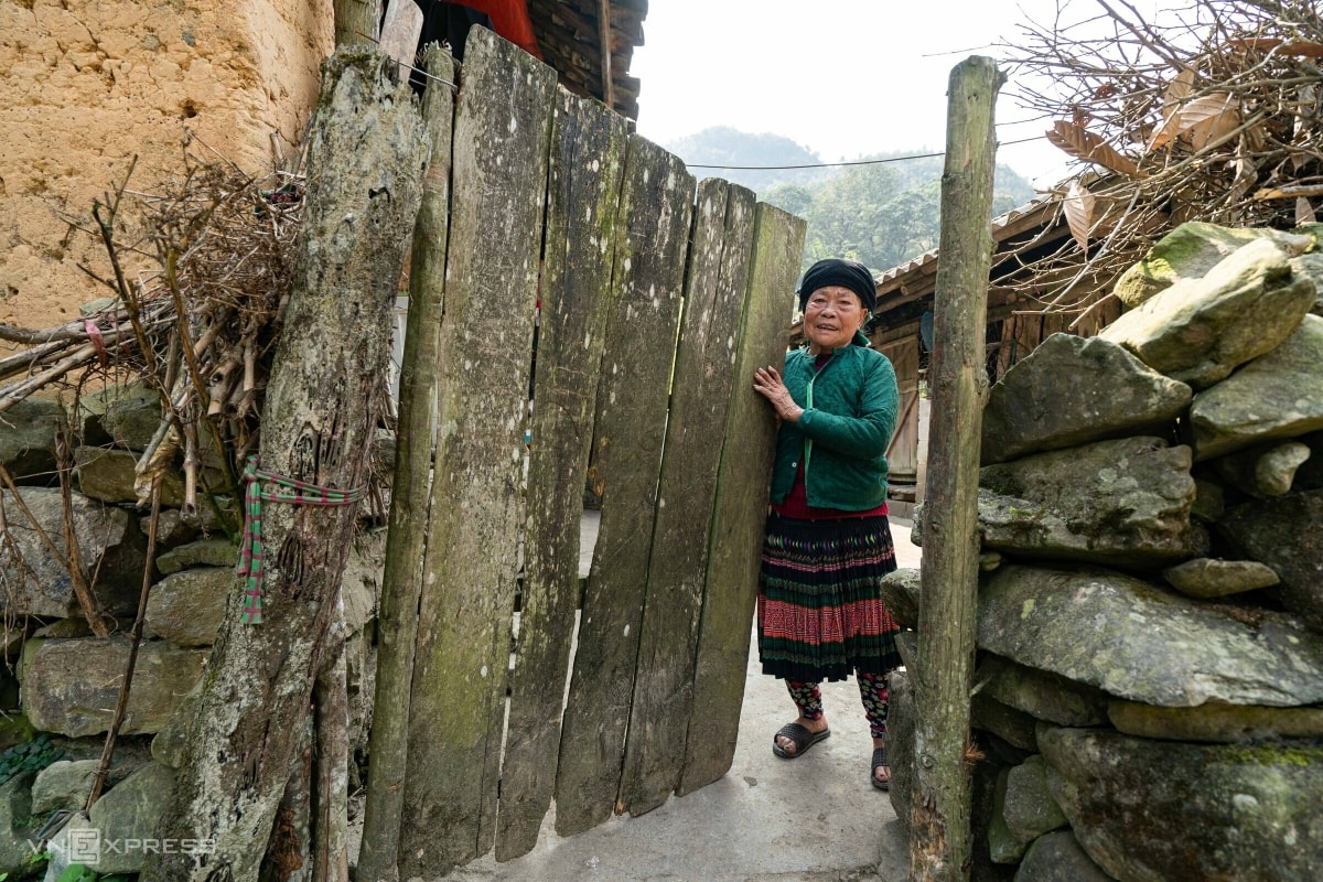 Bà Thào Thị Tùng, 86 tuổi, sống trong căn nhà có tuổi đời 45 năm, chỉ sử dụng miếng gỗ làm cửa và gần như không bao giờ khóa. Sức khỏe bà không tốt nên hạn chế làm việc đồng áng. Tuy nhiên, trong thôn, nhiều phụ nữ H'Mông vẫn ra đồng làm việc dù trên 90 tuổi.
