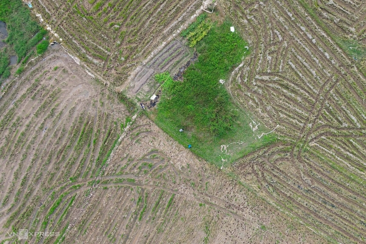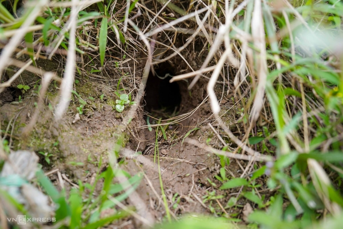 Một hố chuột trên đồng ở xã Chàng Sơn. Theo anh Phú, nghề bắt chuột ở Canh Nậu đã qua thời "đỉnh cao". Người có tuổi, mắt kém nên bắt không được nhiều. Những người trẻ, khỏe có khả năng đánh 200 bẫy như anh rất ít.