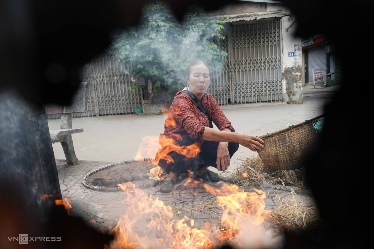 Vợ ông Lại hun chuột bằng rơm. Theo bà, thịt chuột được chế biến theo nhiều cách - phổ biến nhất là xào sả ớt, hấp, nướng. Bà cũng là "tay bắt chuột tài tình" nhưng hiện chỉ phụ chồng trong việc sơ chế, vận chuyển, hiếm khi ra đồng.