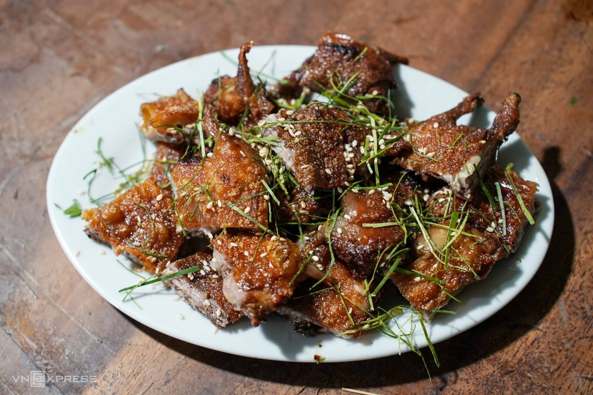 Phần thịt chuột nướng được rắc thêm vừng, lá chanh, được những nhiều thực khách yêu thích, đặc biệt là các nhóm nhậu.
