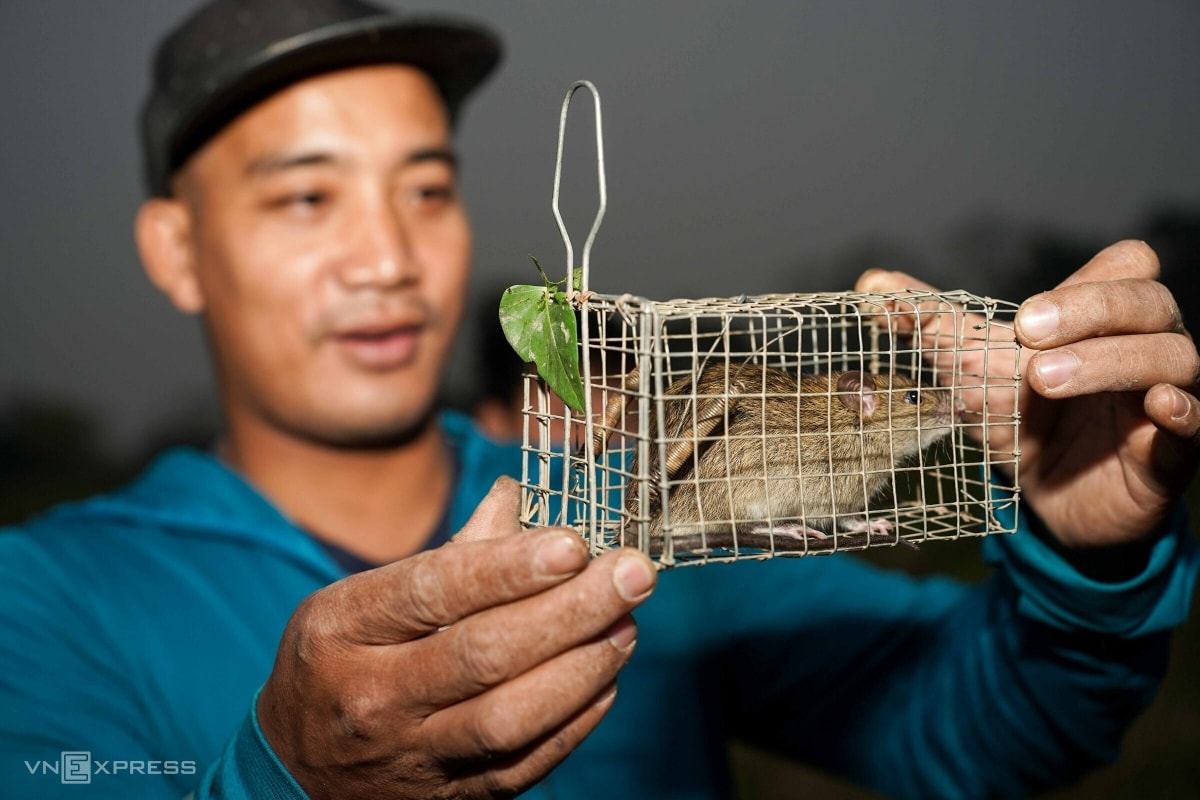 "Tôi hiểu chúng đến độ nhìn dấu chân trên đồng là biết cũ hay mới, là hiểu nó đang đi đường nào để đặt bẫy cho chuẩn", anh nói. Mỗi buổi đặt bẫy kéo dài 4 tiếng, có thể lâu hơn nếu ruộng lớn. Ngoài đặt bẫy, anh cũng thả chó đuổi và úp chuột bằng tay, đôi khi bị chuột cắn chảy máu tay.