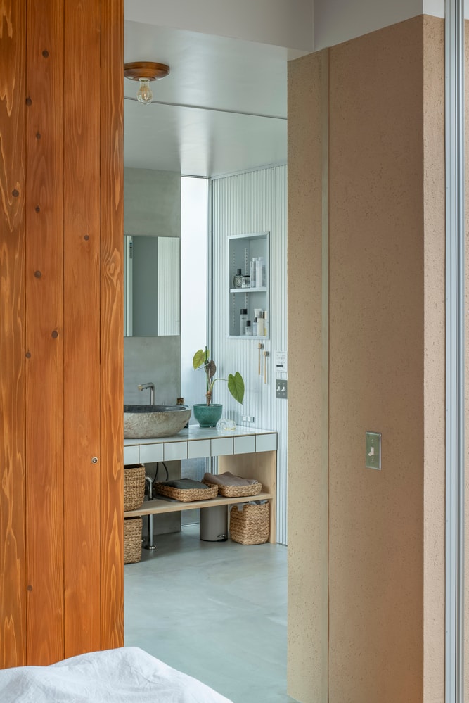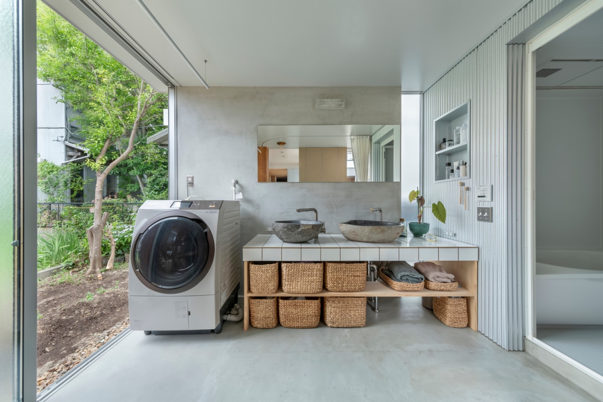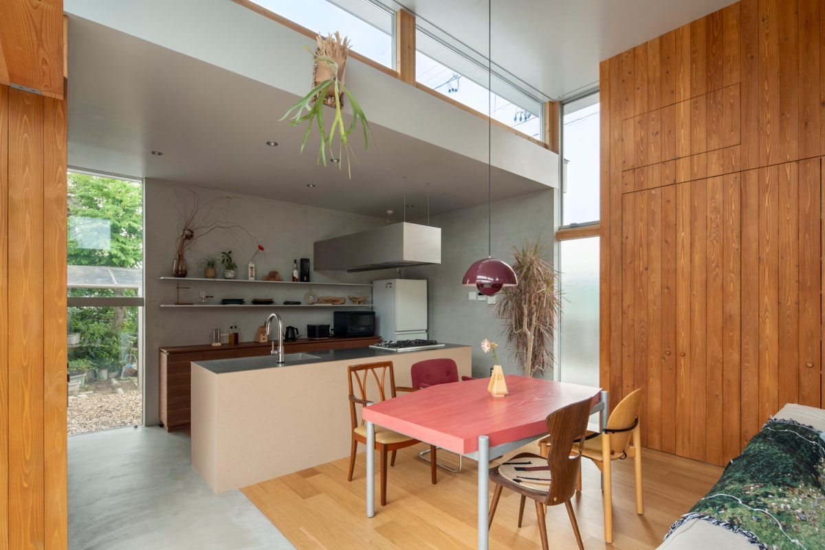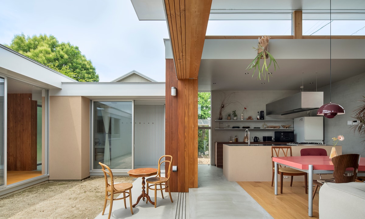 Căn nhà được thiết kế như một tập hợp các lớp vật liệu và không gian mở, giúp tăng liên thông trong sinh hoạt.