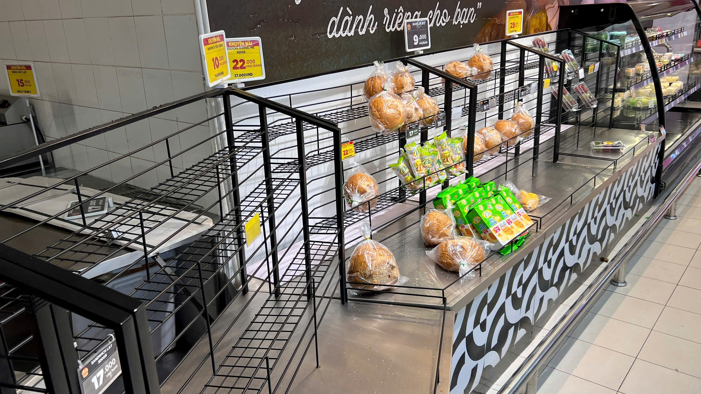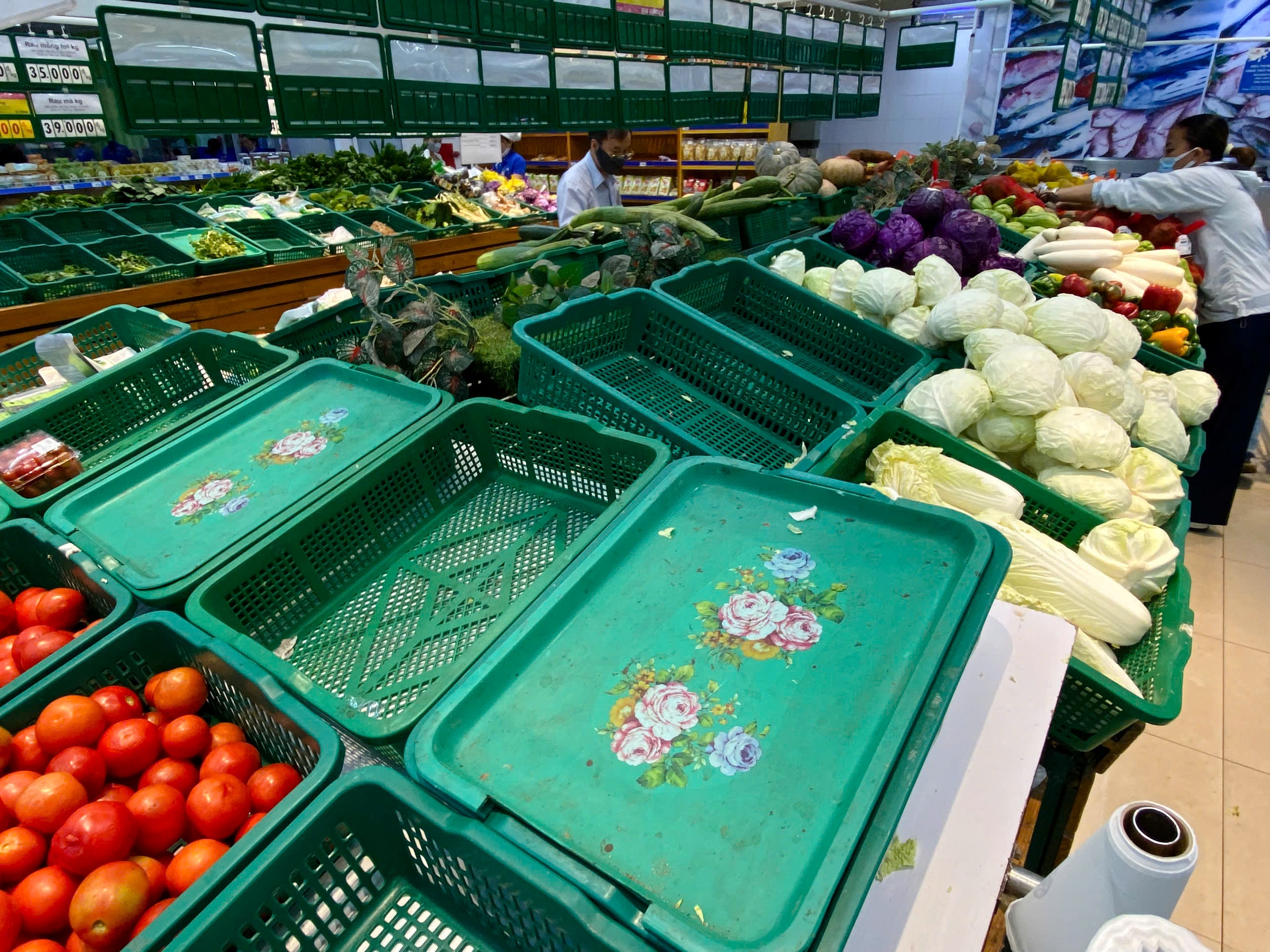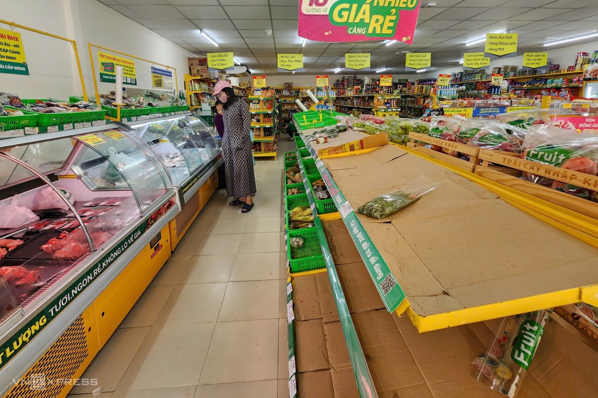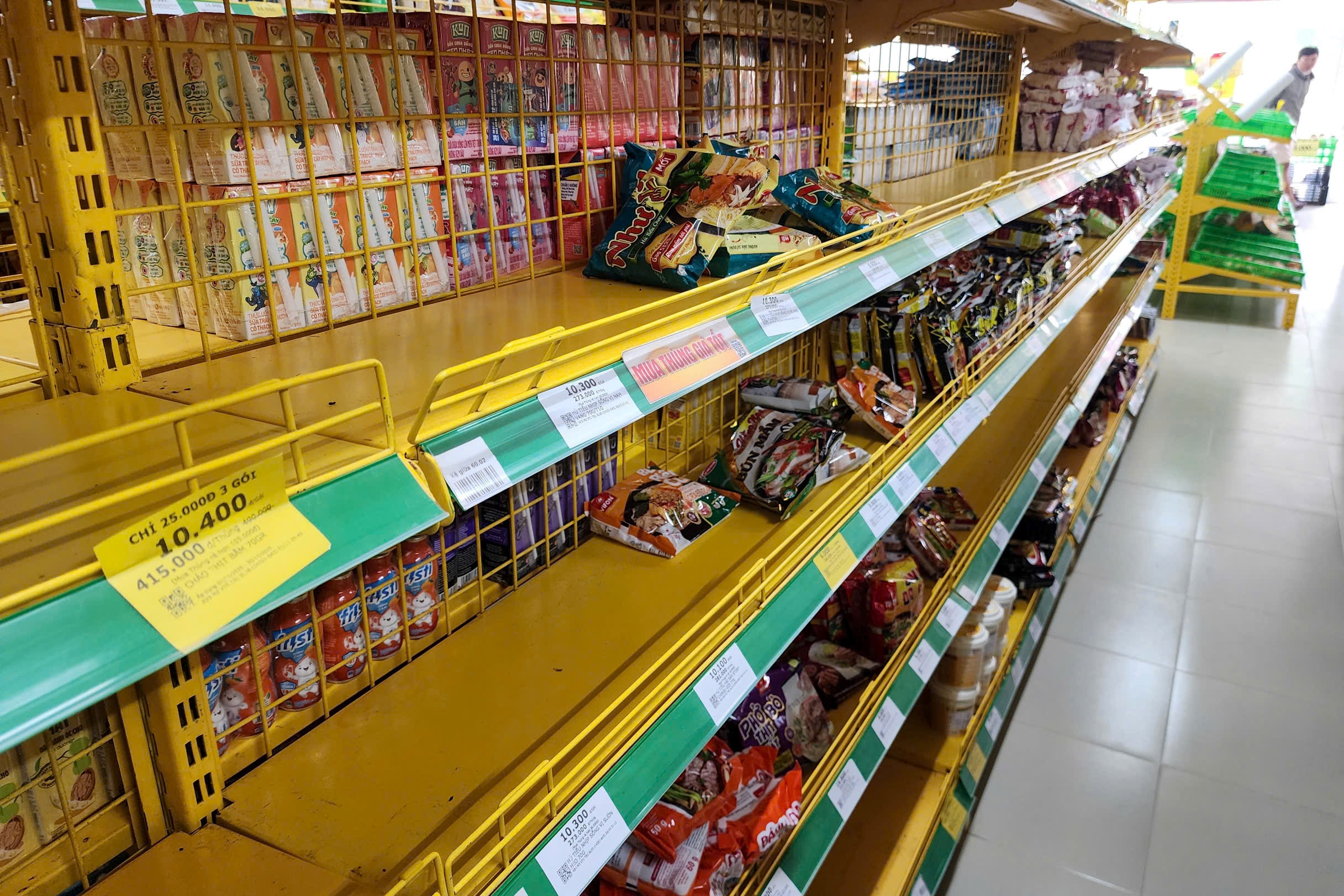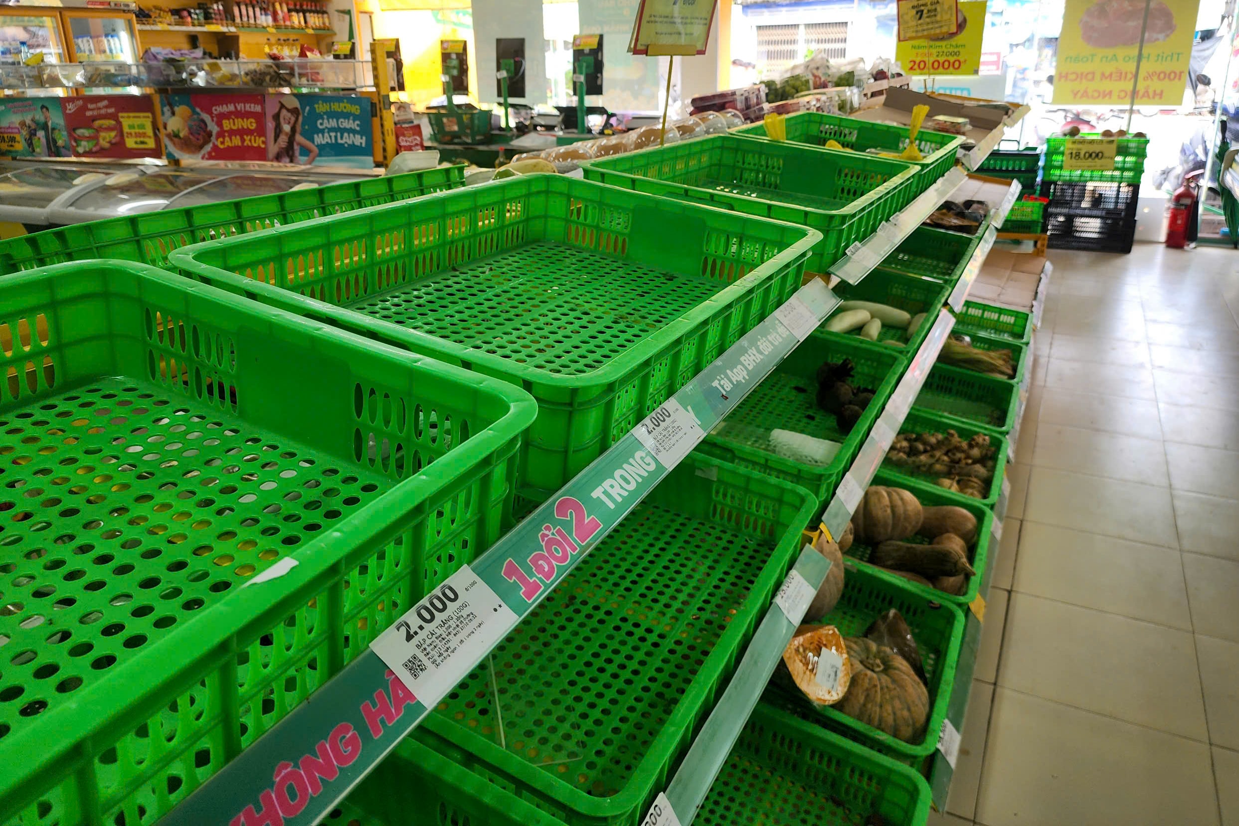Nhiều kệ rau củ, thịt cá ở siêu thị, cửa hàng tại Gia Lai, Đăk Lăk "cháy hàng" khi người dân mua lương thực, thực phẩm trước bão Kalmaegi đổ bộ, trưa 5/11.