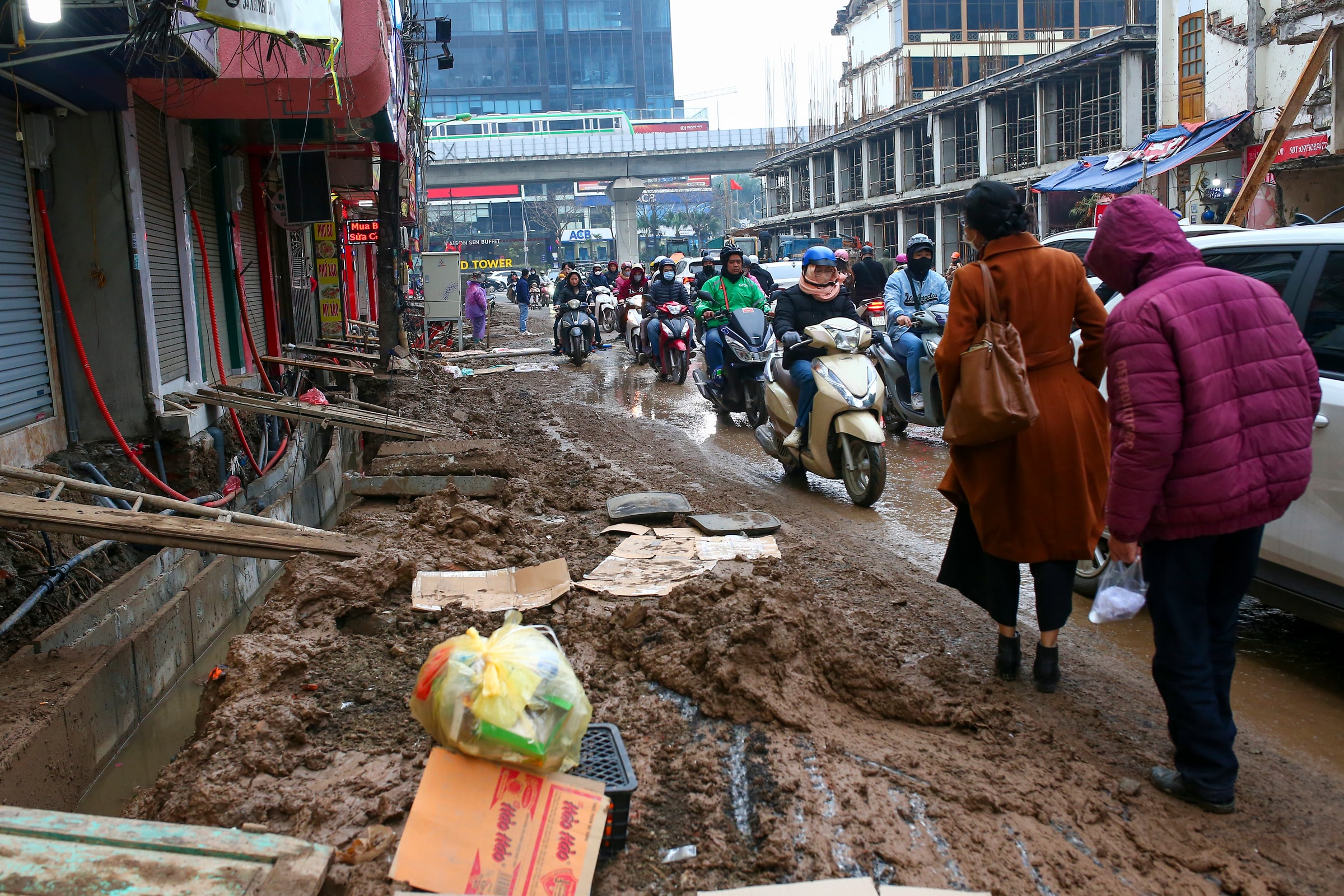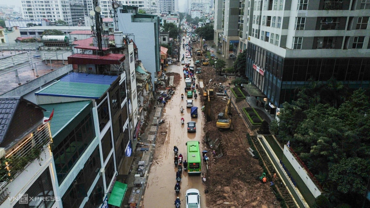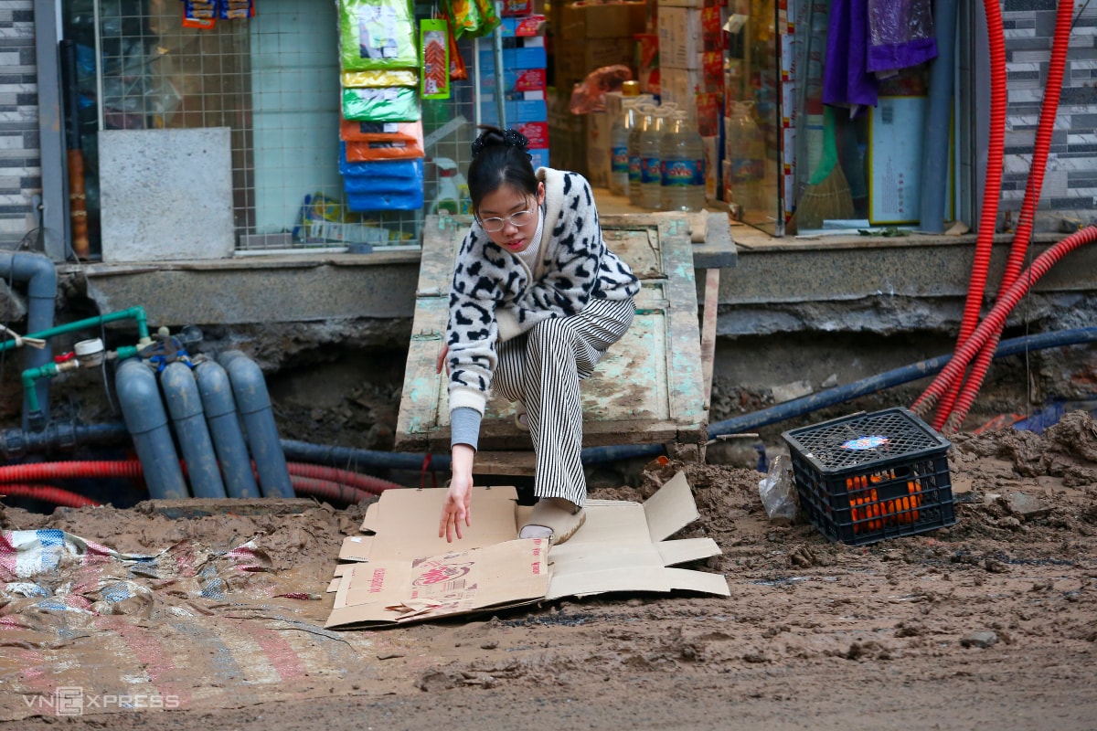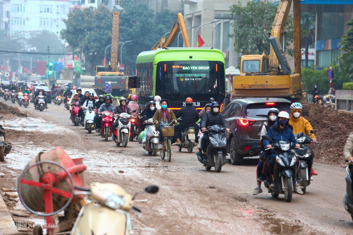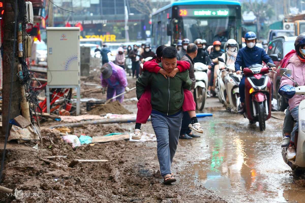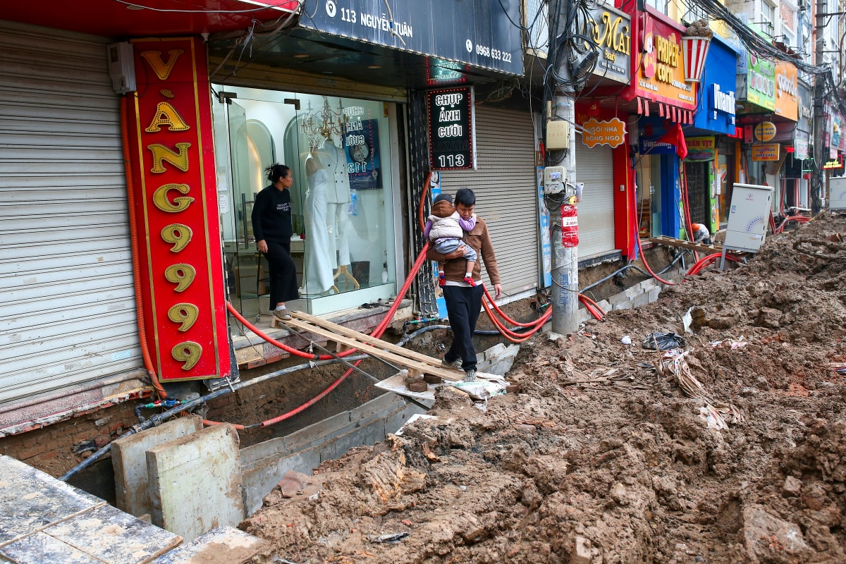 Quá trình mở rộng đường Nguyễn Tuân, nối hai tuyến xuyên tâm lớn phía tây Hà Nội, gây nhiều phiền toái khi bùn đất ngổn ngang, người dân phải bắc ván để vào nhà.