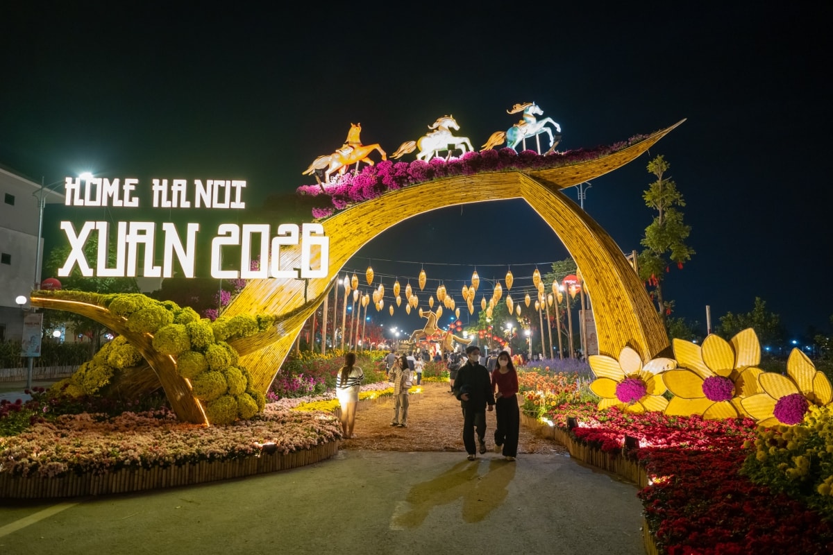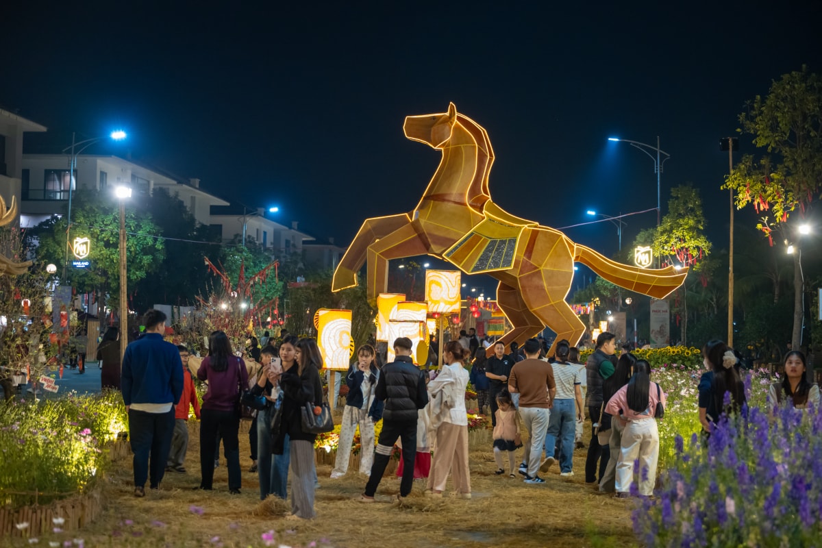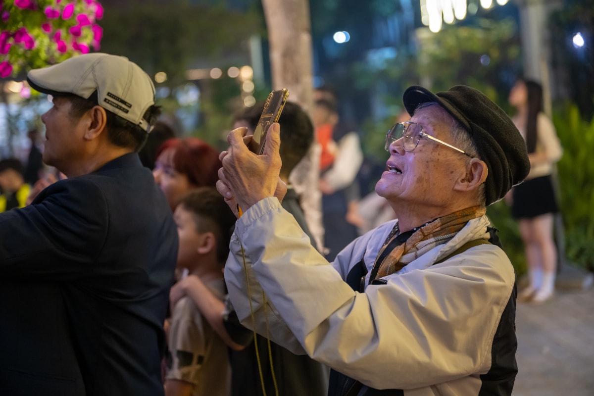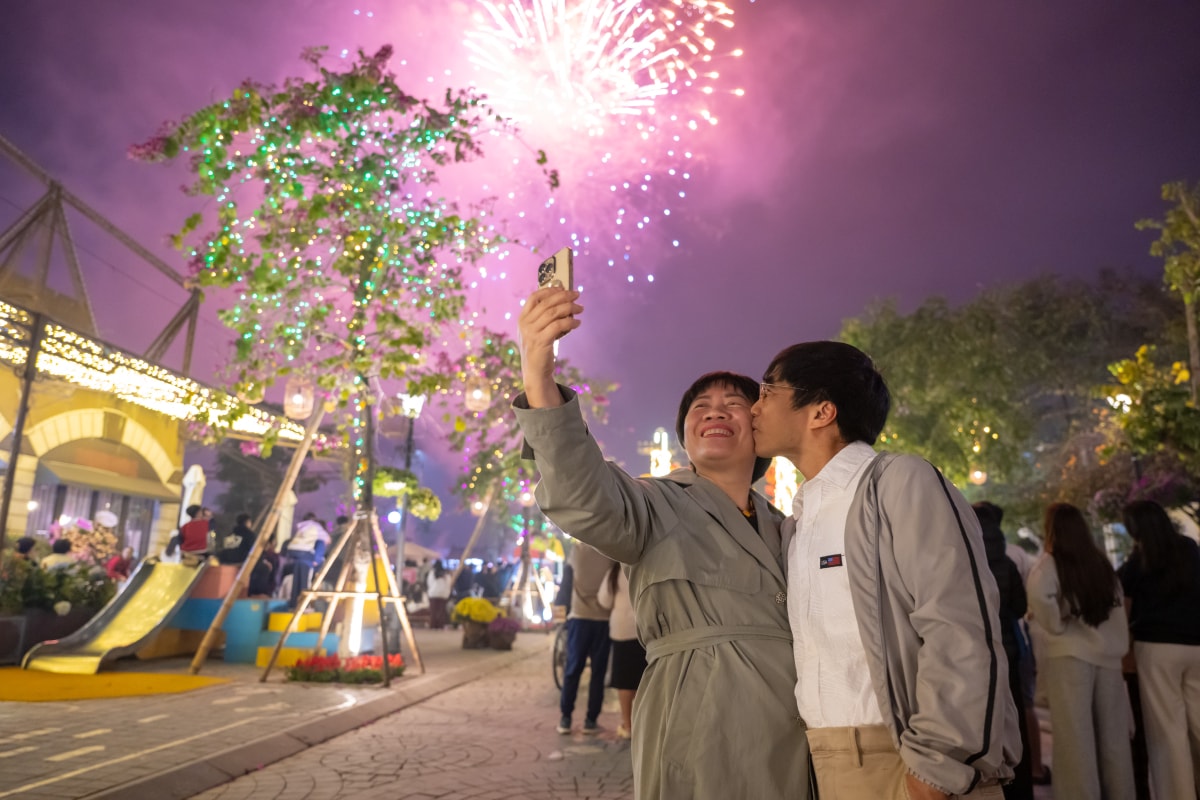 Hàng nghìn người dân xã An Khánh, Sơn Đồng, phường Tây Mỗ và khu vực lân cận đổ về khu đô thị Mailand Hanoi City vui chơi, chụp ảnh đợi pháo hoa rực rỡ trong thời khắc giao thừa.