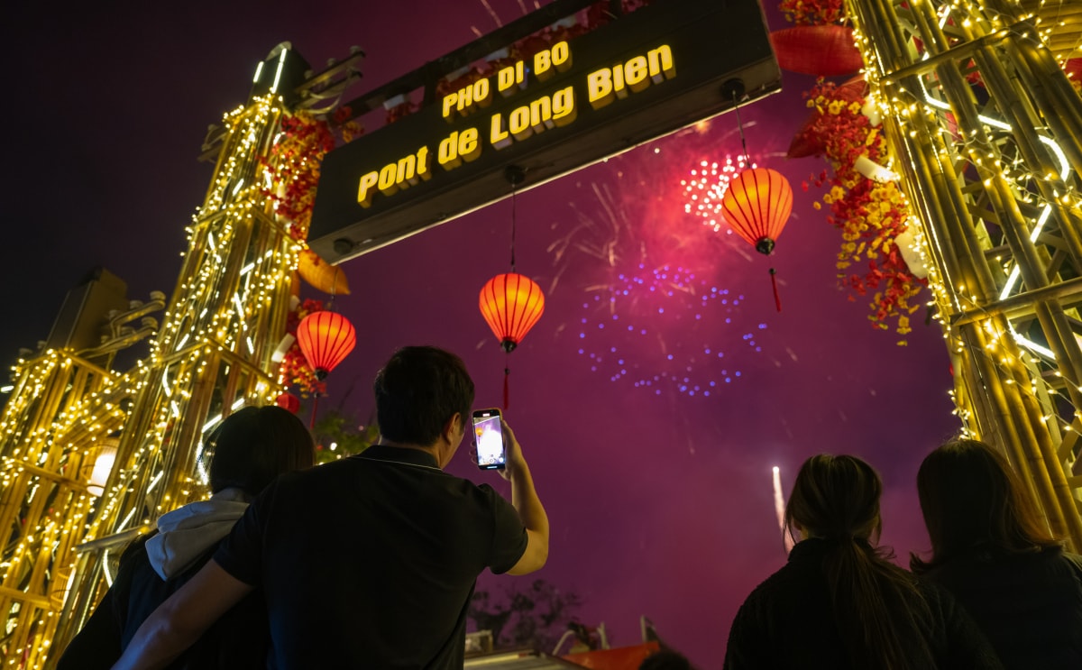 Người dân ngắm pháo hoa, đón giao thừa tại Mailand Hanoi City