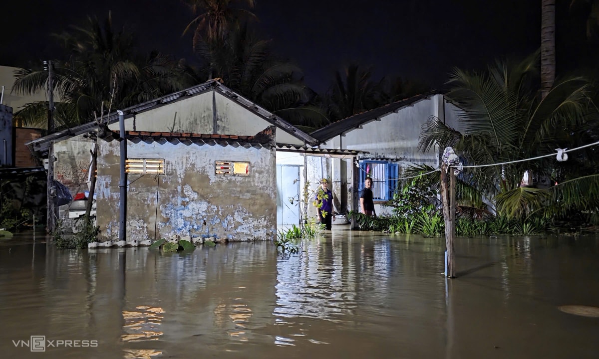 Lũ từ sông Quao đổ về cùng triều cường khiến nhiều nhà ở TP Phan Thiết cũ ngập nặng, chính quyền sơ tán người dân trong đêm 4/12.