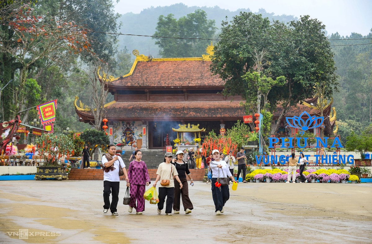 Hàng chục nghìn du khách đến Phủ Na - nơi gắn với tên tuổi Bà Triệu dấy binh đánh giặc, để chiêm bái, cầu an và xin "nước thánh" lấy may.