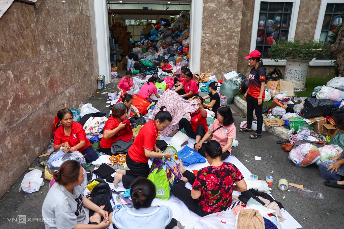 Các điểm tiếp nhận hàng cứu trợ ở nhà ga metro, trụ sở chính quyền, khu chung cư đông đúc người dân mang đồ tới ủng hộ miền Trung.