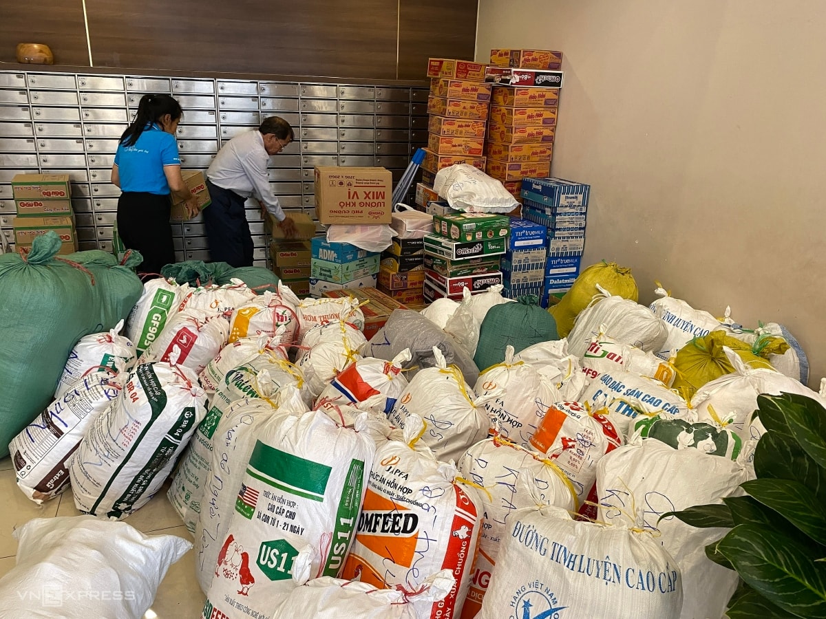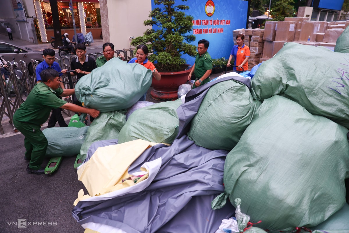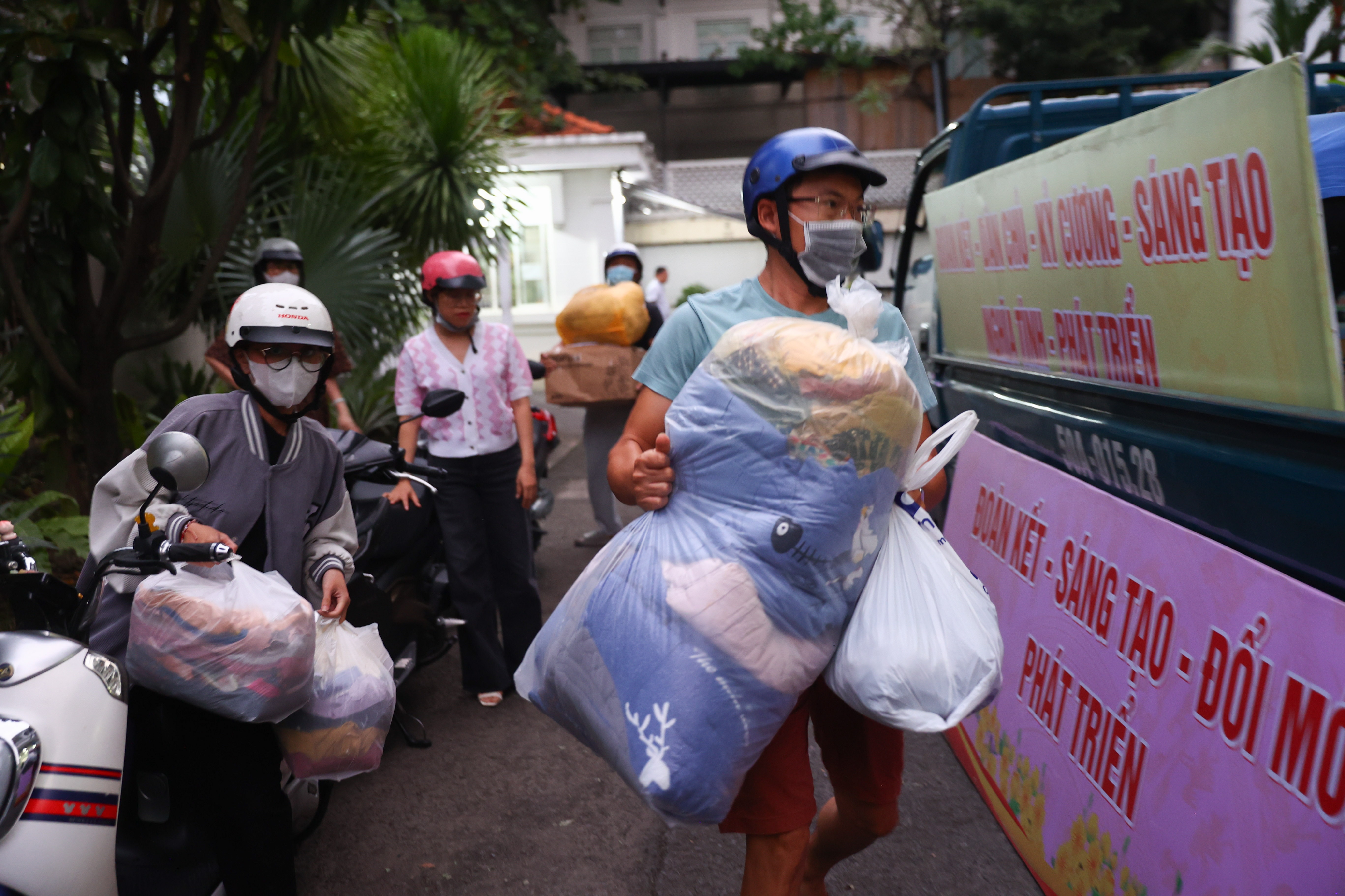 Người dân TP HCM mang nhu yếu phẩm hỗ trợ miền Trung