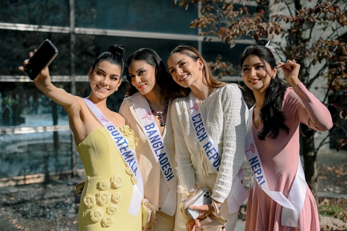 Các người đẹp làm quen, chụp ảnh kỷ niệm tại một hoạt động, ngày 13/11.