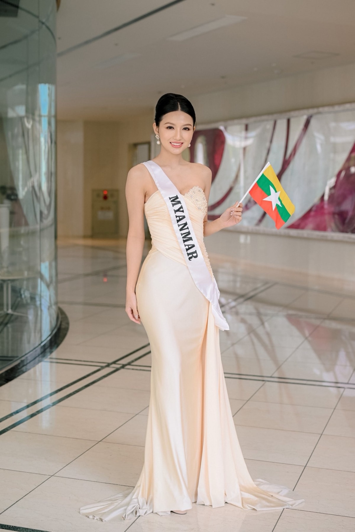Thí sinh của Myanmar - Nan Inzali - được Missosology xếp vị trí đầu trong bảng đánh giá ở chặng đầu. Cô 23 tuổi, là người mẫu, từng giành danh hiệu Á hậu 1 Miss Universe Myanmar 2025.