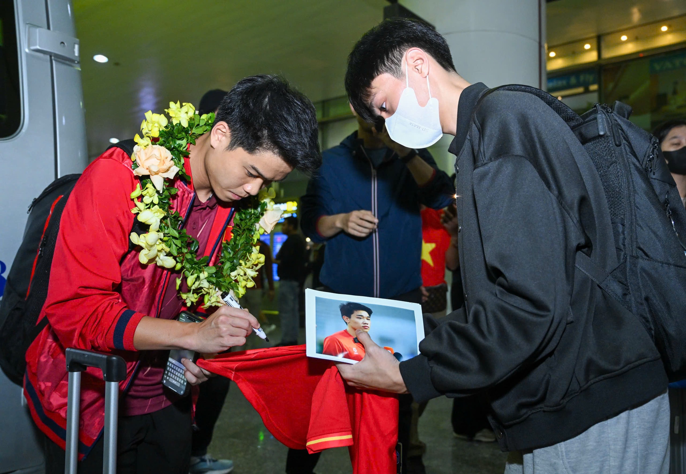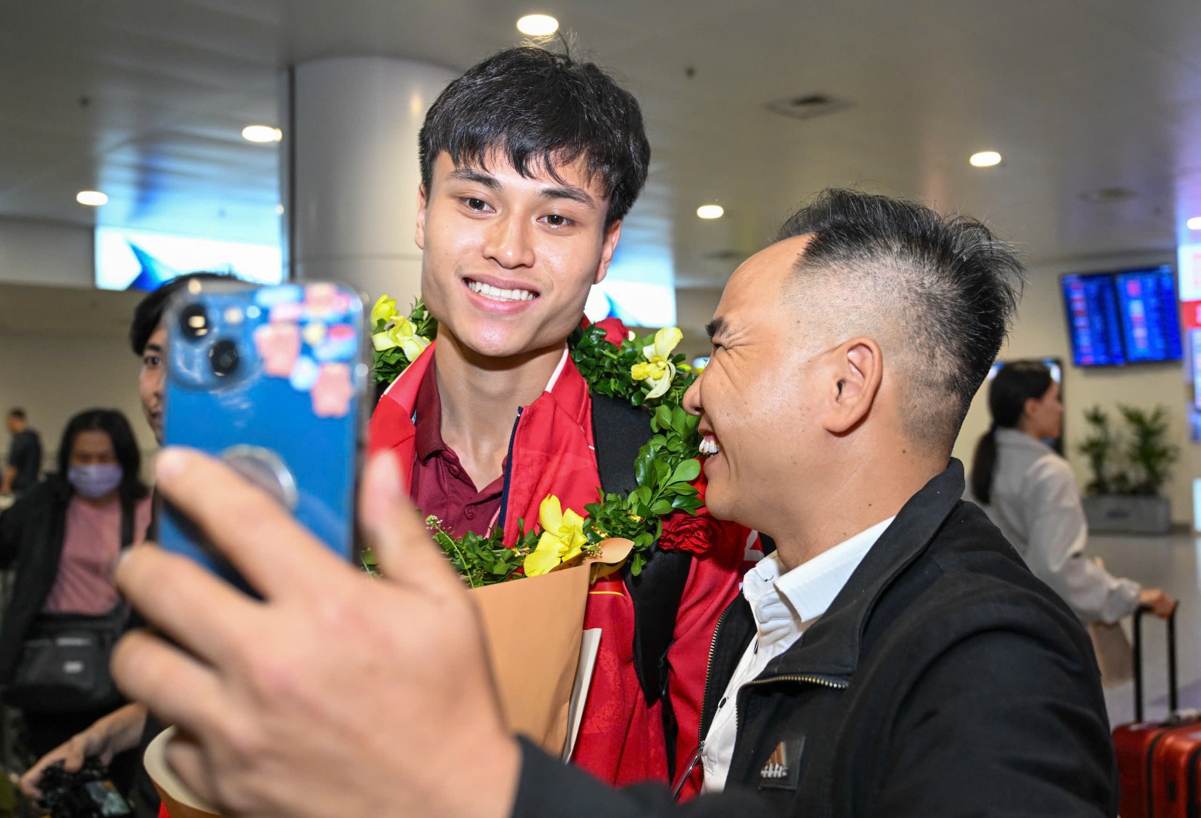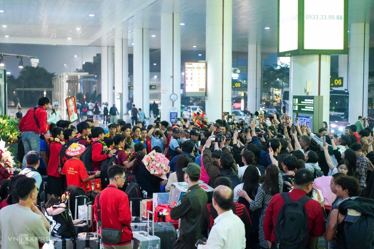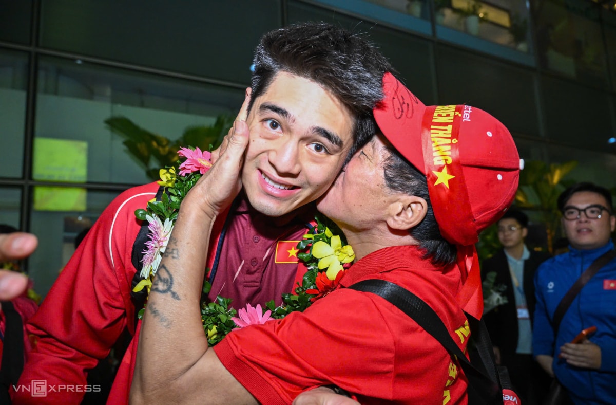 Sau khi giành HC vàng SEA Games 33, thầy trò HLV Kim Sang-sik được chào đón từ lúc lên máy bay cho đến khi rời sân bay Nội Bài ở Hà Nội vào tối nay.