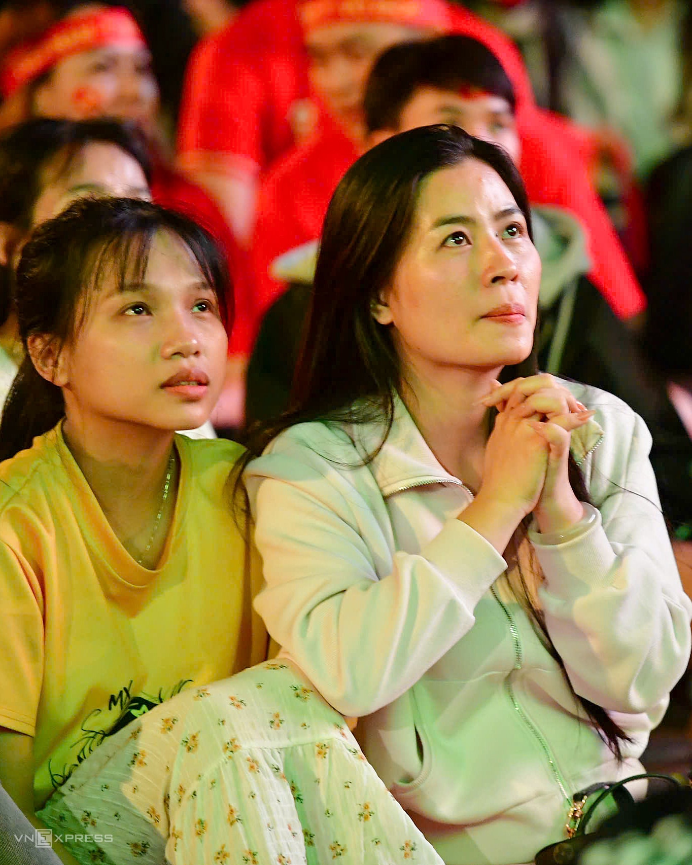 Trong bối cảnh khung thành của thủ môn Văn Bình liên tục bị vây hãm, các cổ động viên chỉ biết chắp tay cầu nguyện rồi thở phào sau mỗi pha đội nhà giải vây thành công.