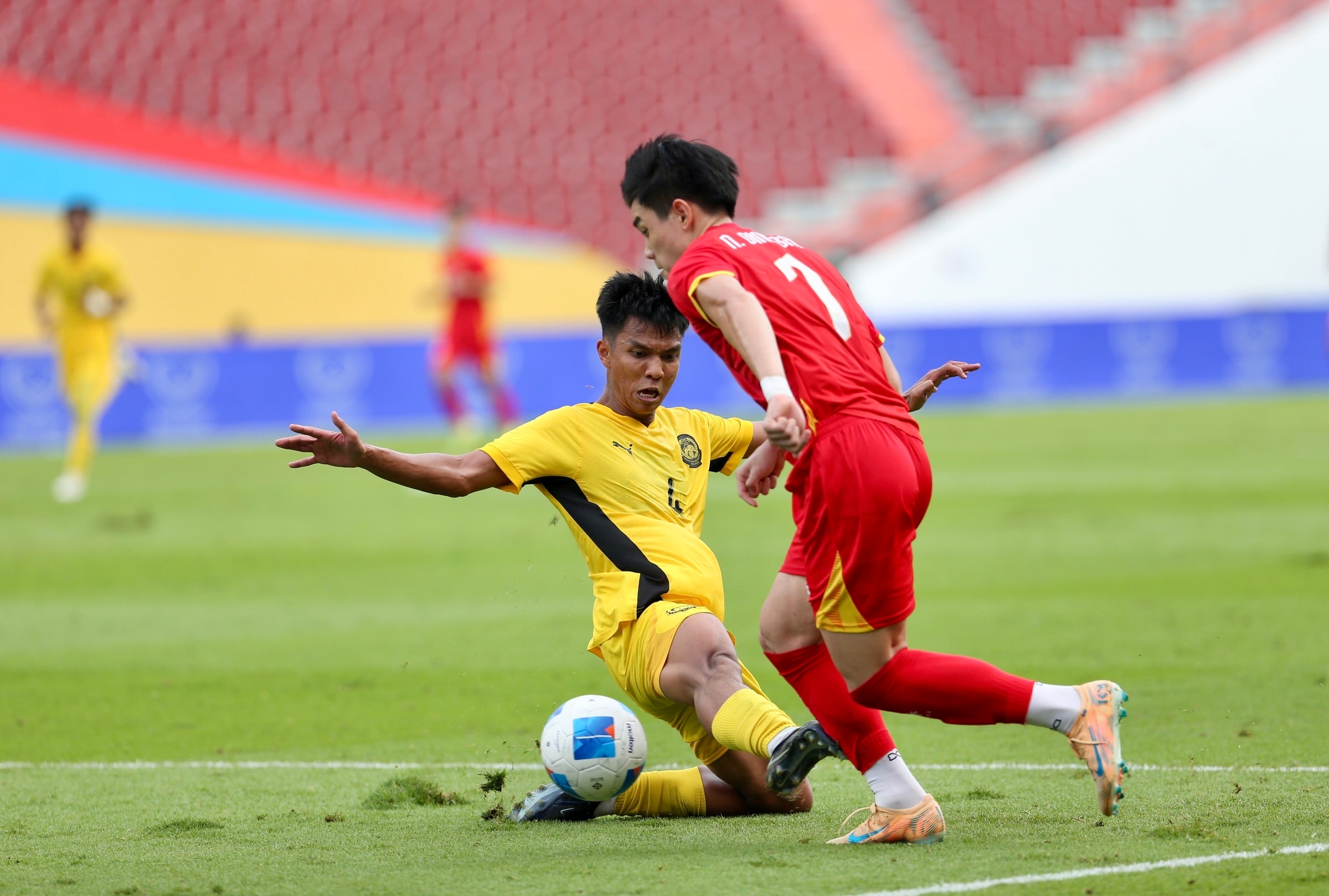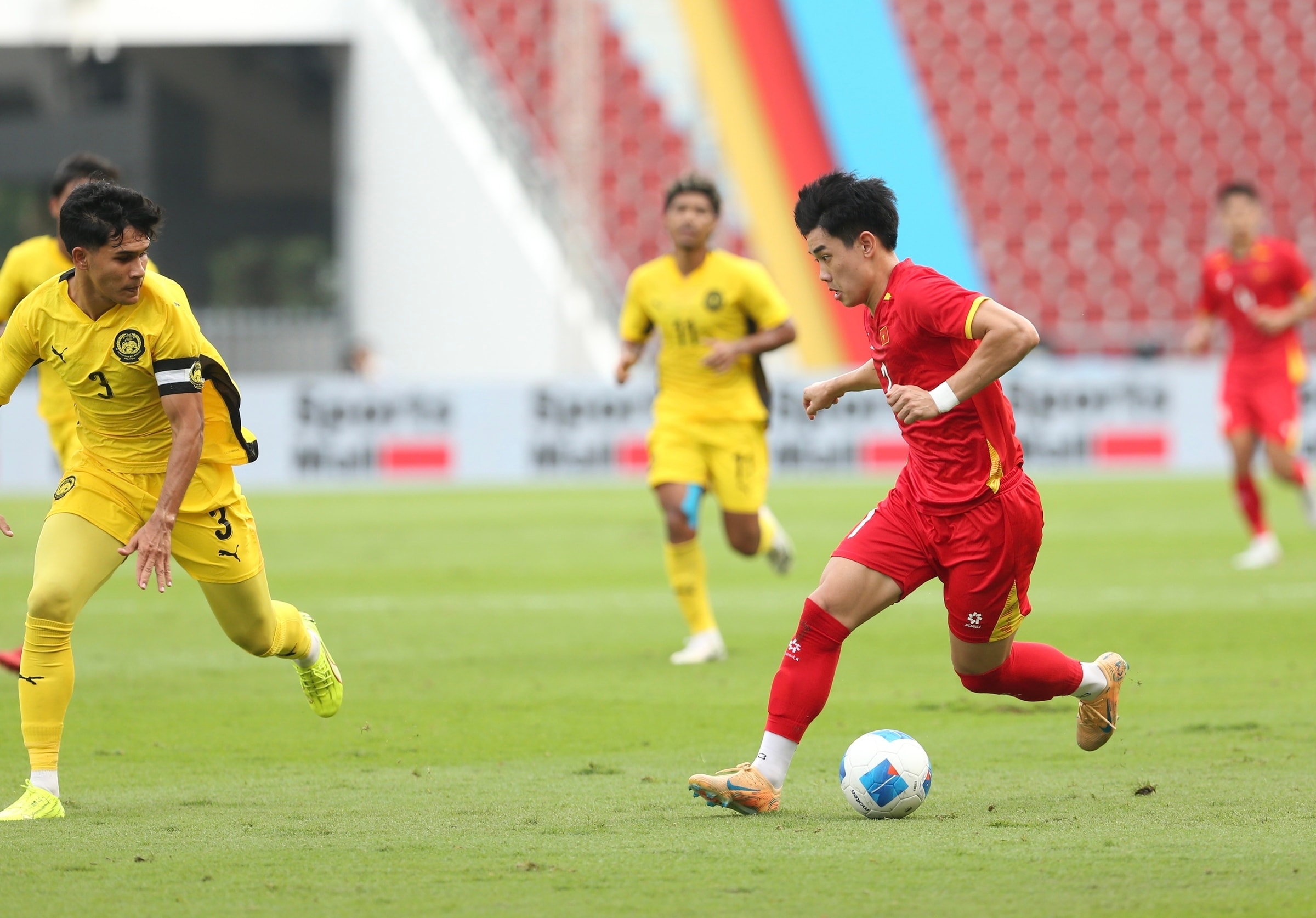 Ngay phút thứ 2, Đình Bắc đẩy bóng một nhịp vượt qua Ahmad Alif để vào vòng cấm. Sau đó, anh căng ngang chân trái cho thủ quân Khuất Văn Khang dứt điểm chệch cột.