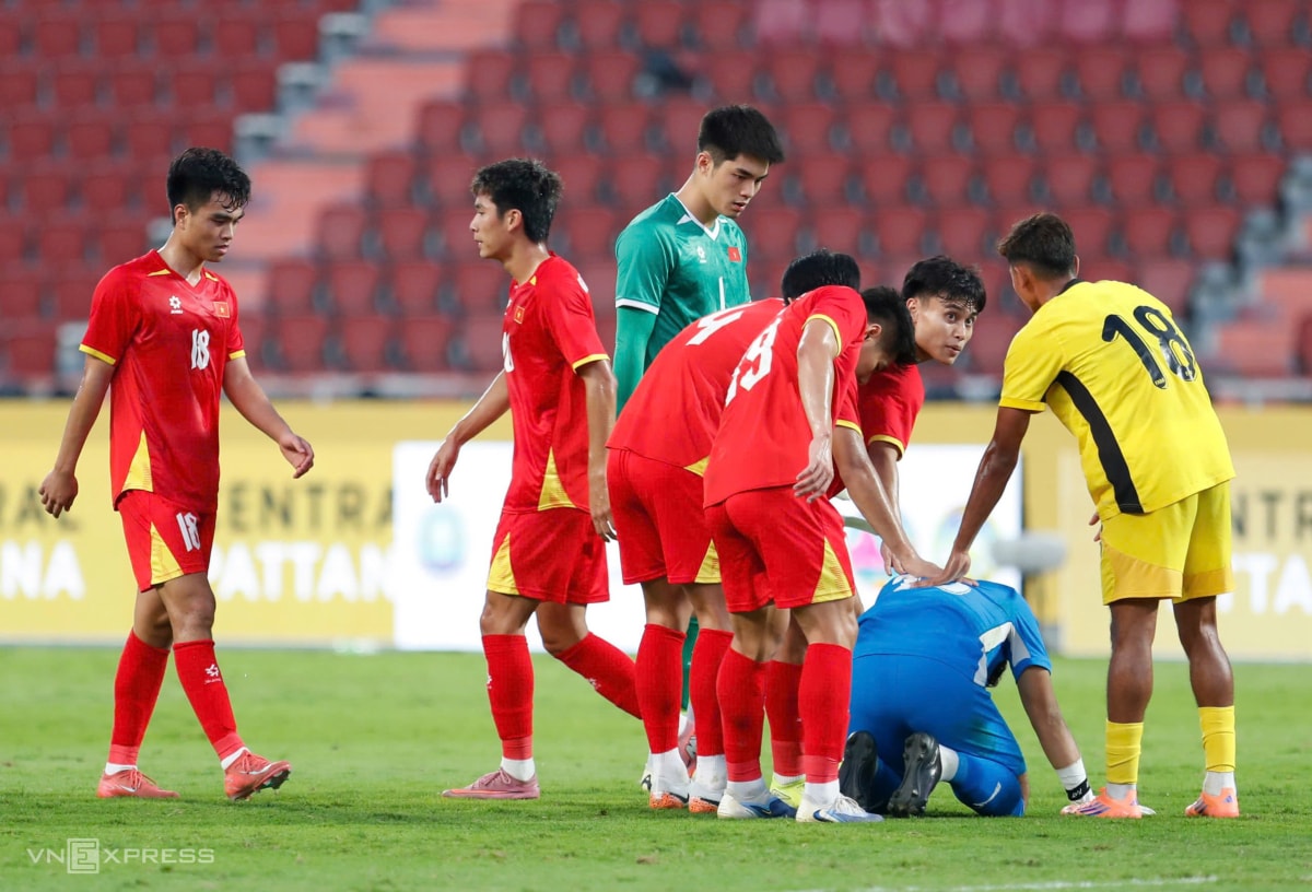 Chiến thắng giúp Việt Nam dẫn đầu bảng B và giành vé vào bán kết. Trong khi đó, Malaysia phải chờ kết quả trện Myanmar gặp Indonesia ở bảng C vào ngày mai mới biết số phận. Dù còn cơ hội, nhưng thủ môn Sharani (áo xanh lam) vẫn gục khóc và được đồng đội lẫn cầu thủ Việt Nam an ủi.