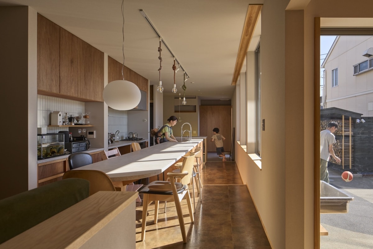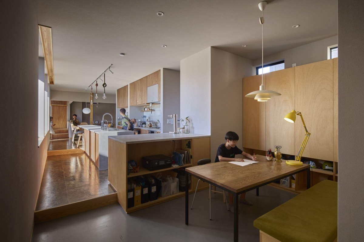 Gia chủ biến khu vực trung tâm của ngôi nhà thành một sân thể thao để 5 người con có chỗ vui chơi, tăng kết nối các thành viên.