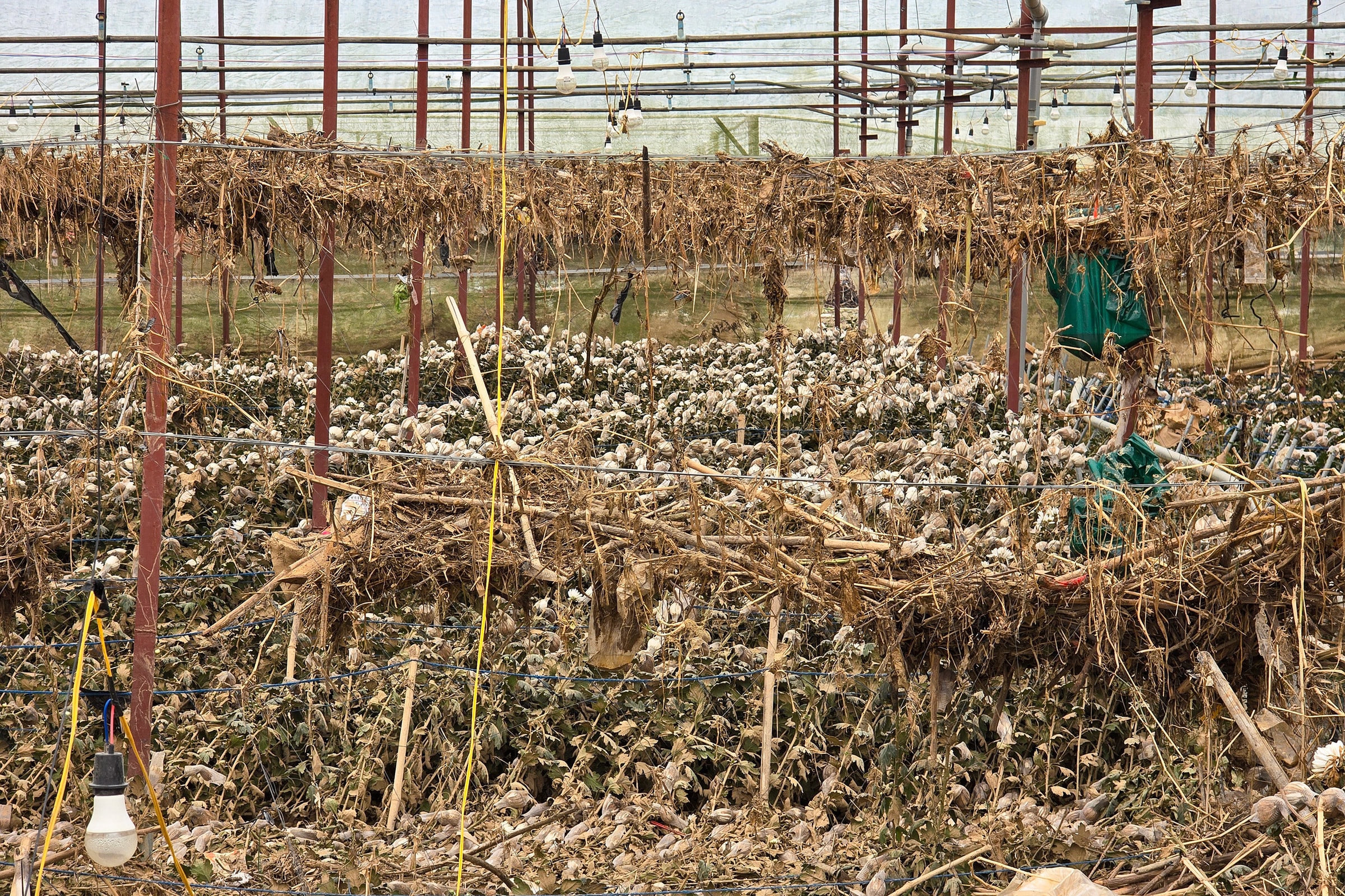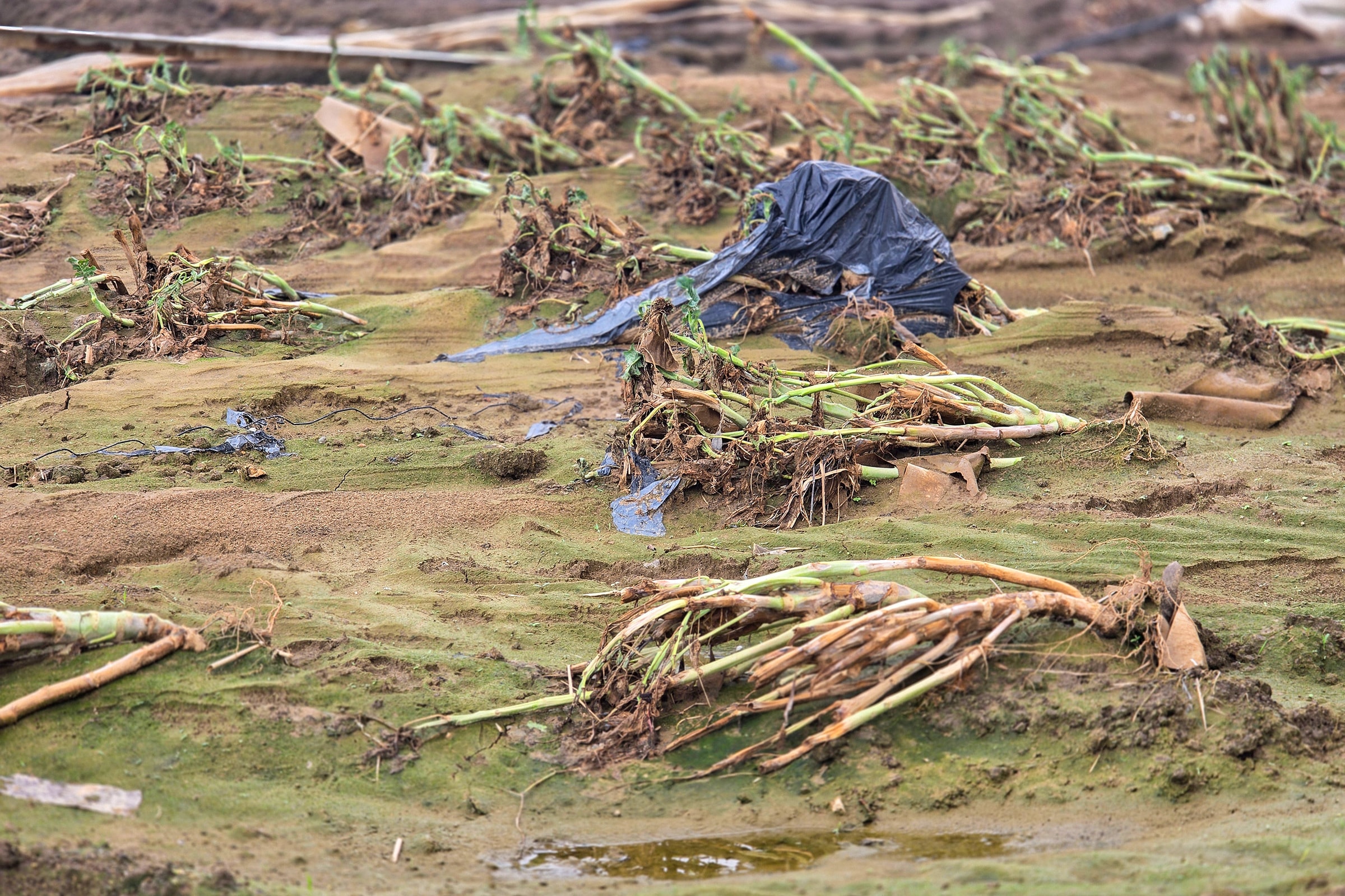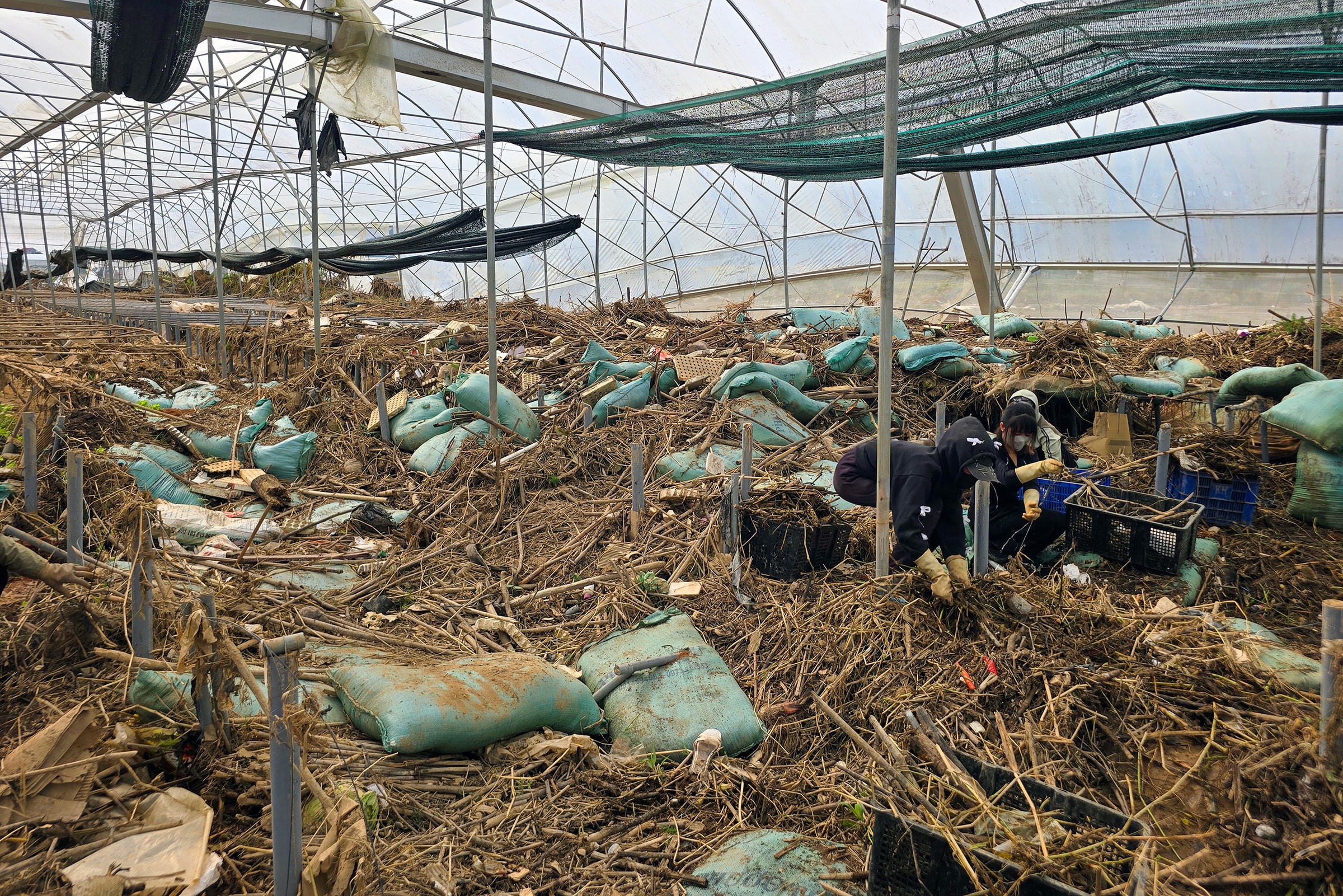 Sau trận lũ lịch sử cuối tháng 11, hàng loạt nhà kính đổ sập, rau màu chết rũ, bùn đất vùi lấp khiến vùng chuyên canh rau xã D’ran tan hoang, nhiều hộ dân trắng tay.