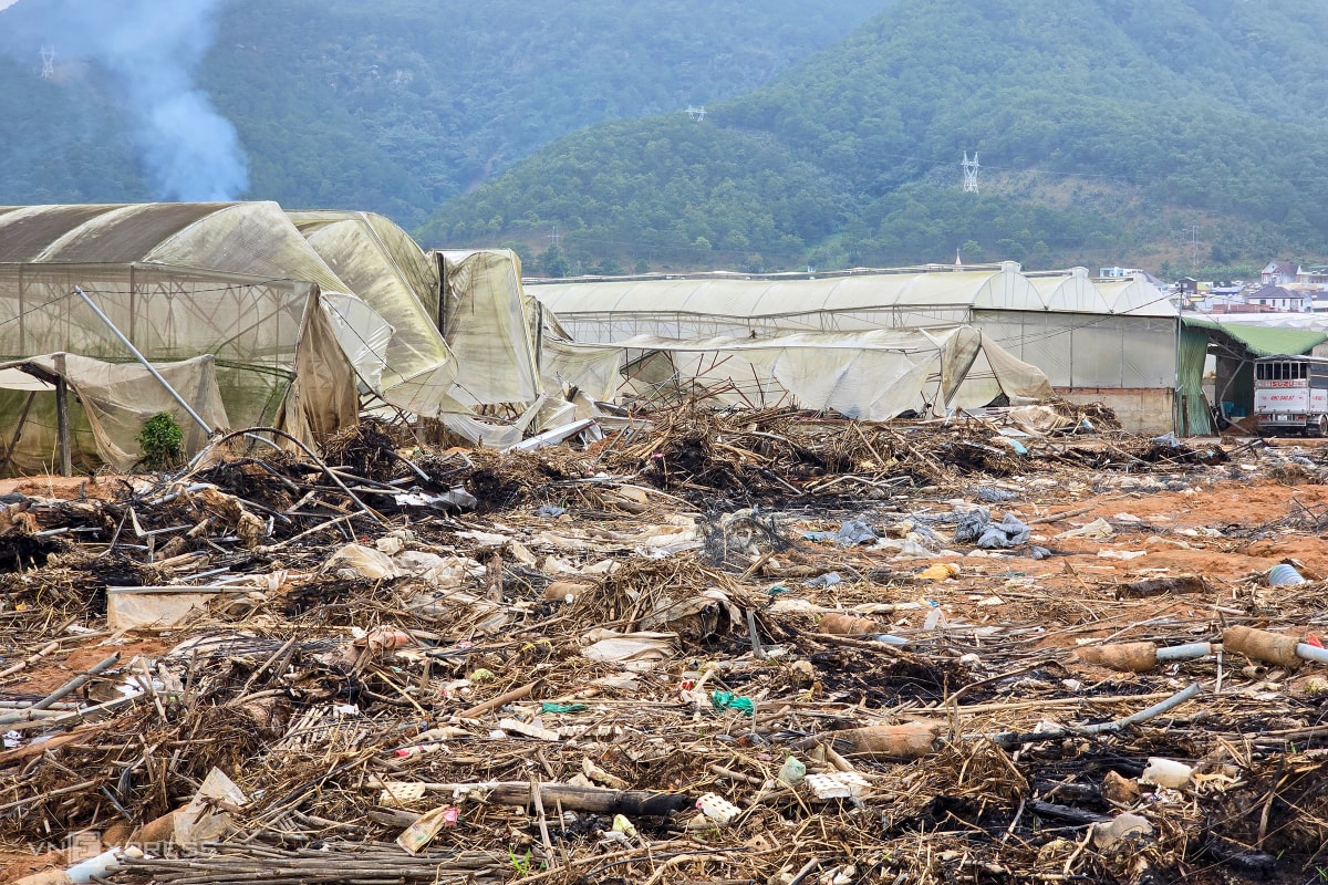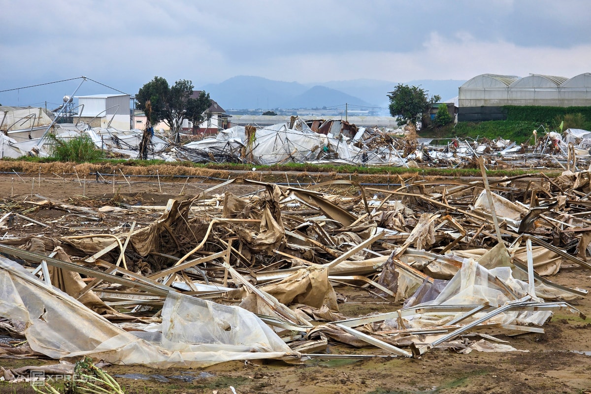 Nhà kính trồng rau ở Lâm Đồng tan hoang sau lũ