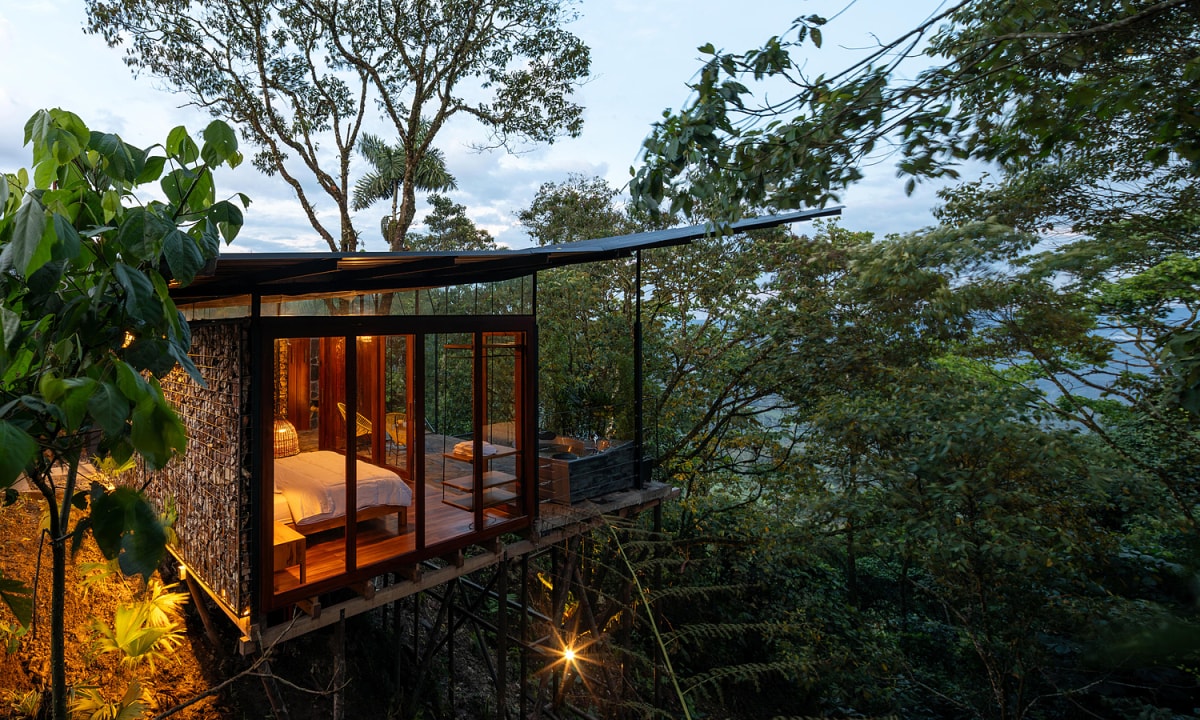 Nhà nghỉ dưỡng giữ nguyên cây lớn xuyên mái giữa rừng Amazon
