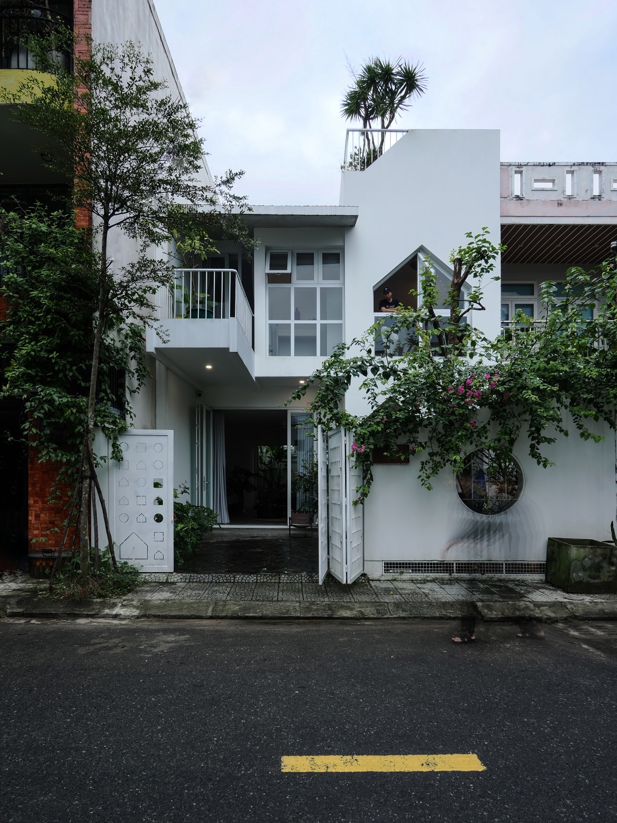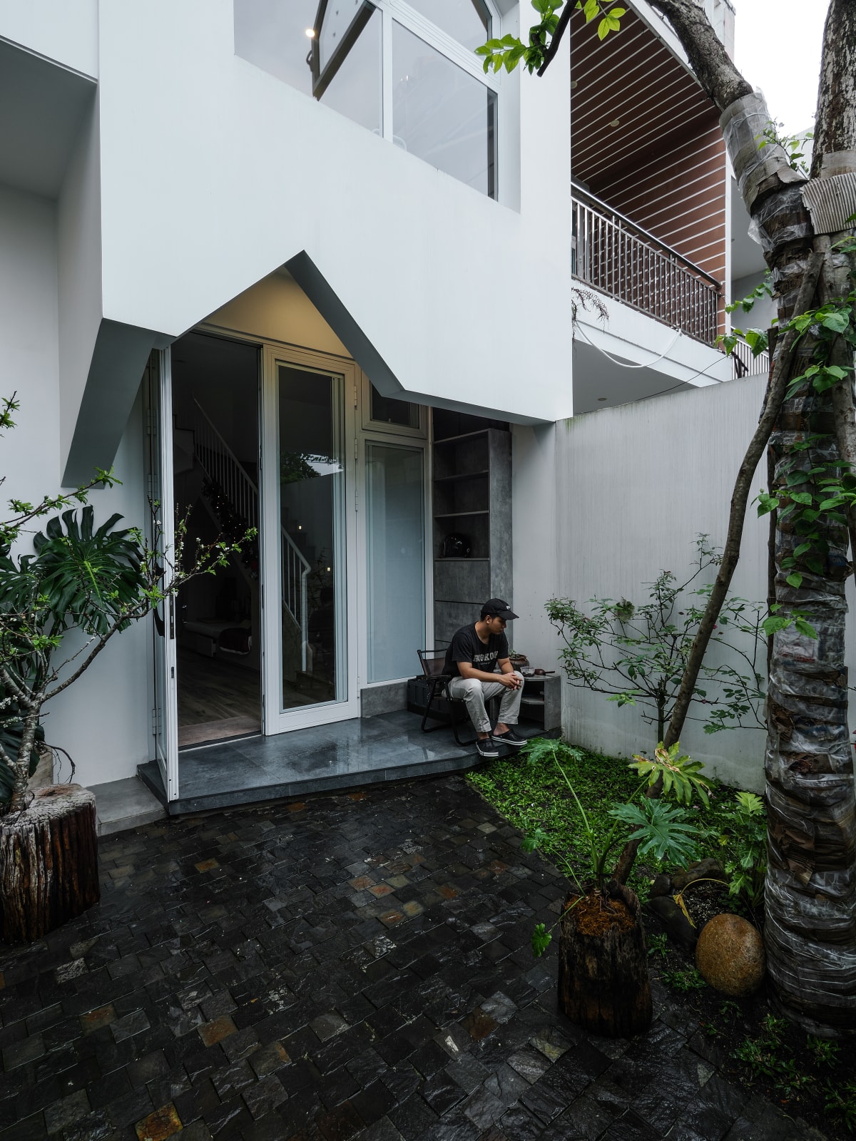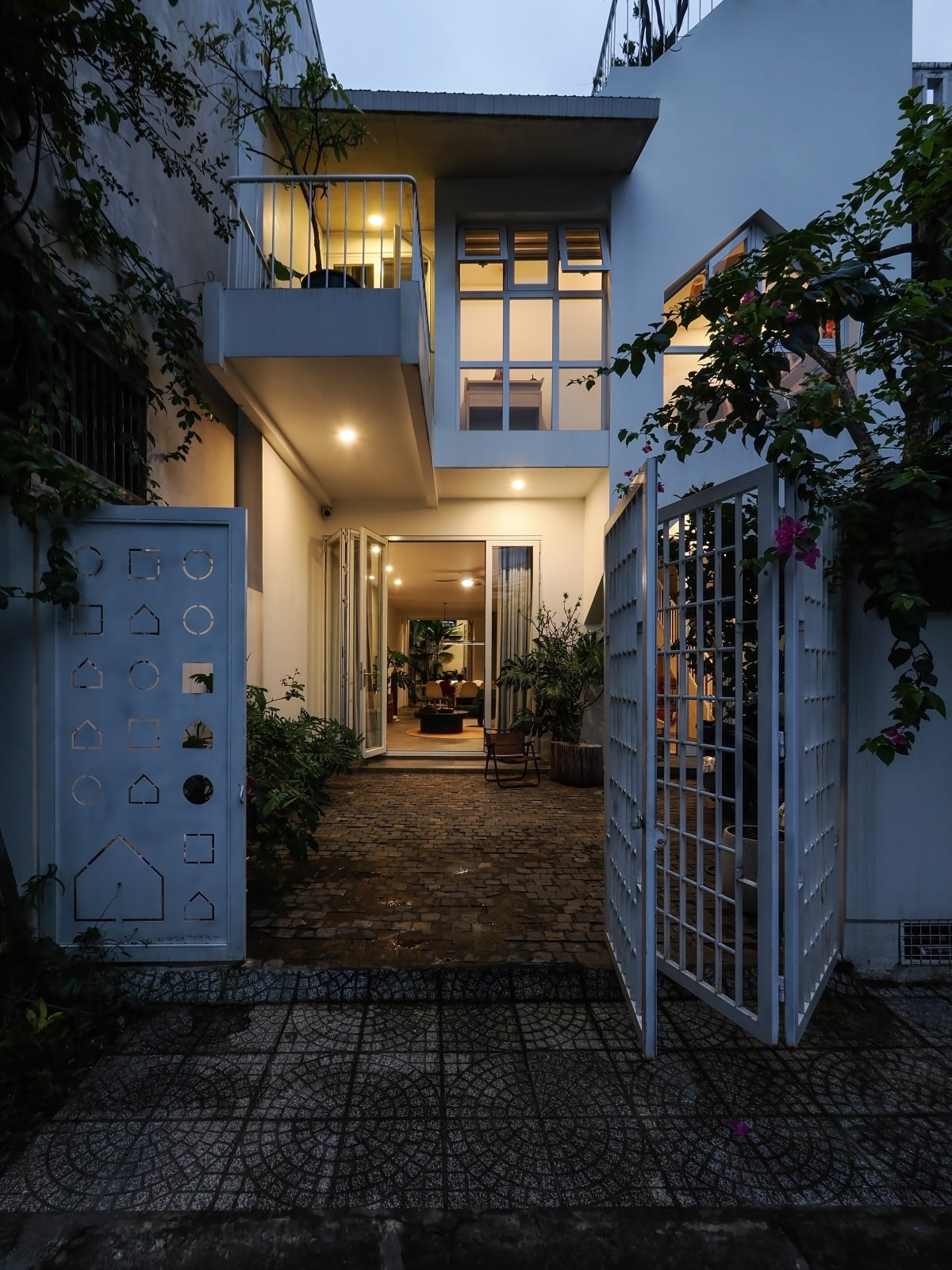 Ngôi nhà được thiết kế theo hướng mở, tận dụng thông tầng và hai khoảng sân để tăng thông gió, ánh sáng tự nhiên.