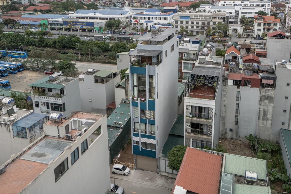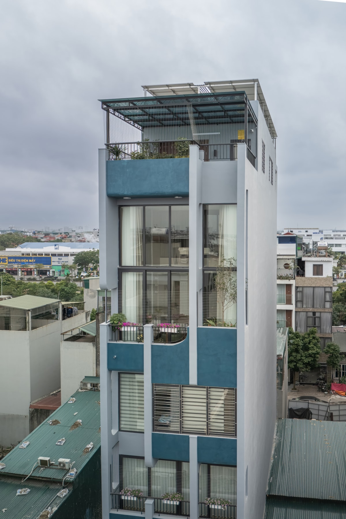Nhà phố 6 tầng dùng hệ vỏ nhiều lớp giữ riêng tư giữa phố đông
