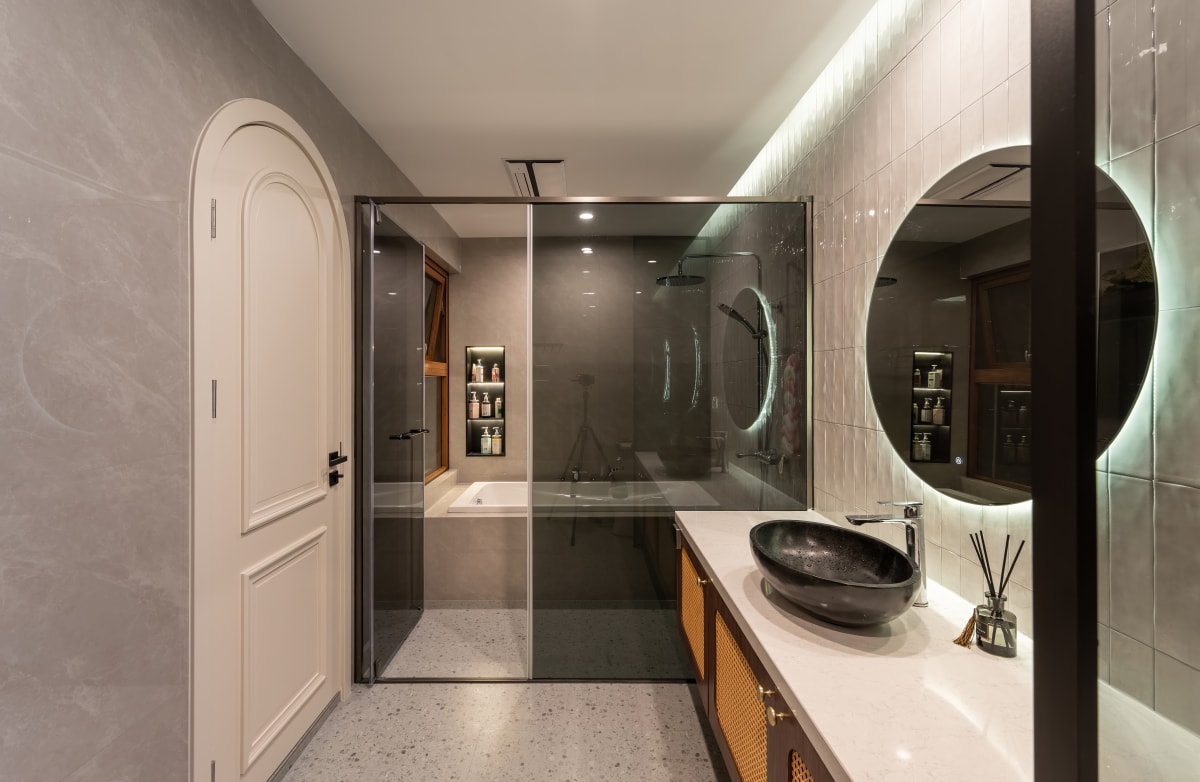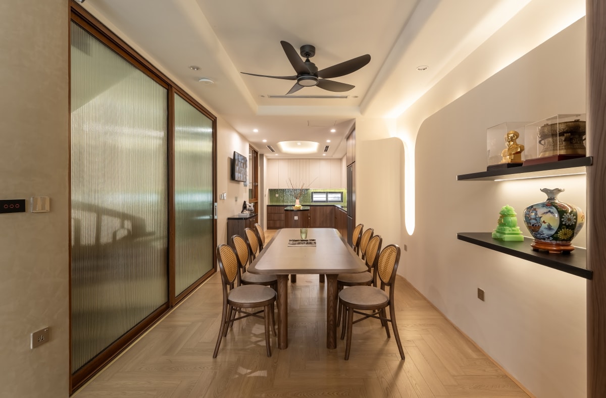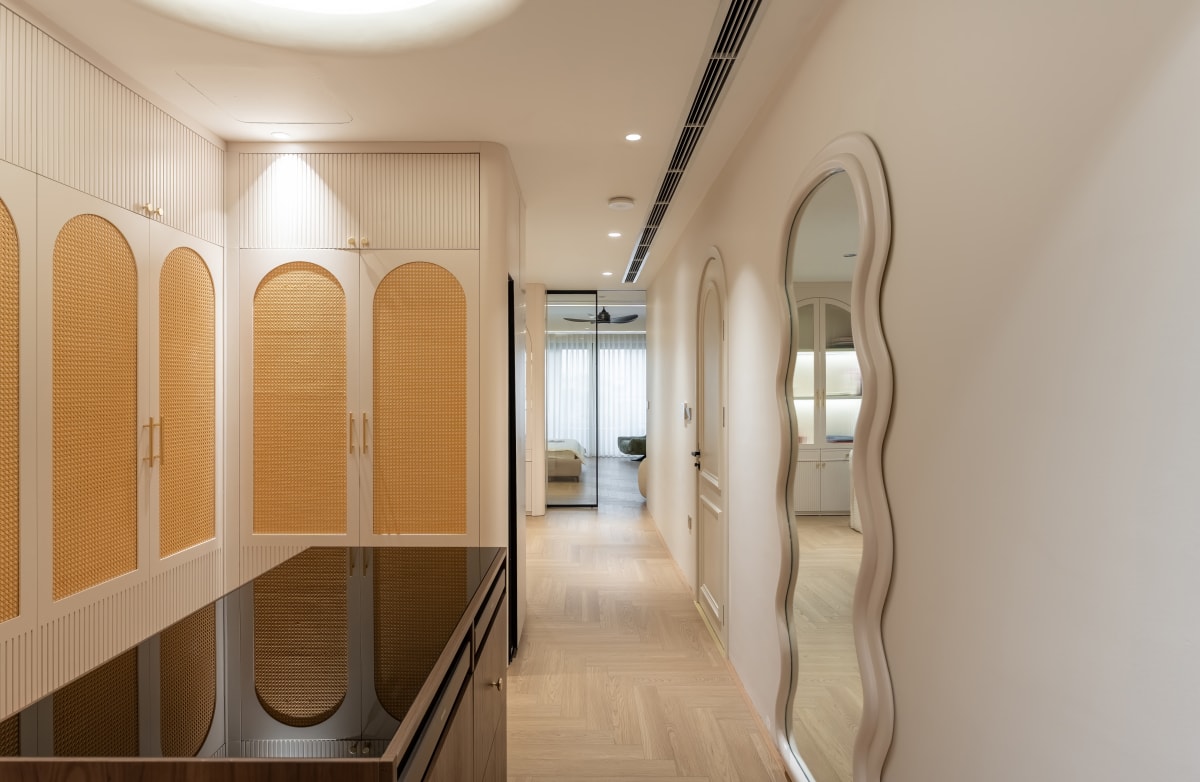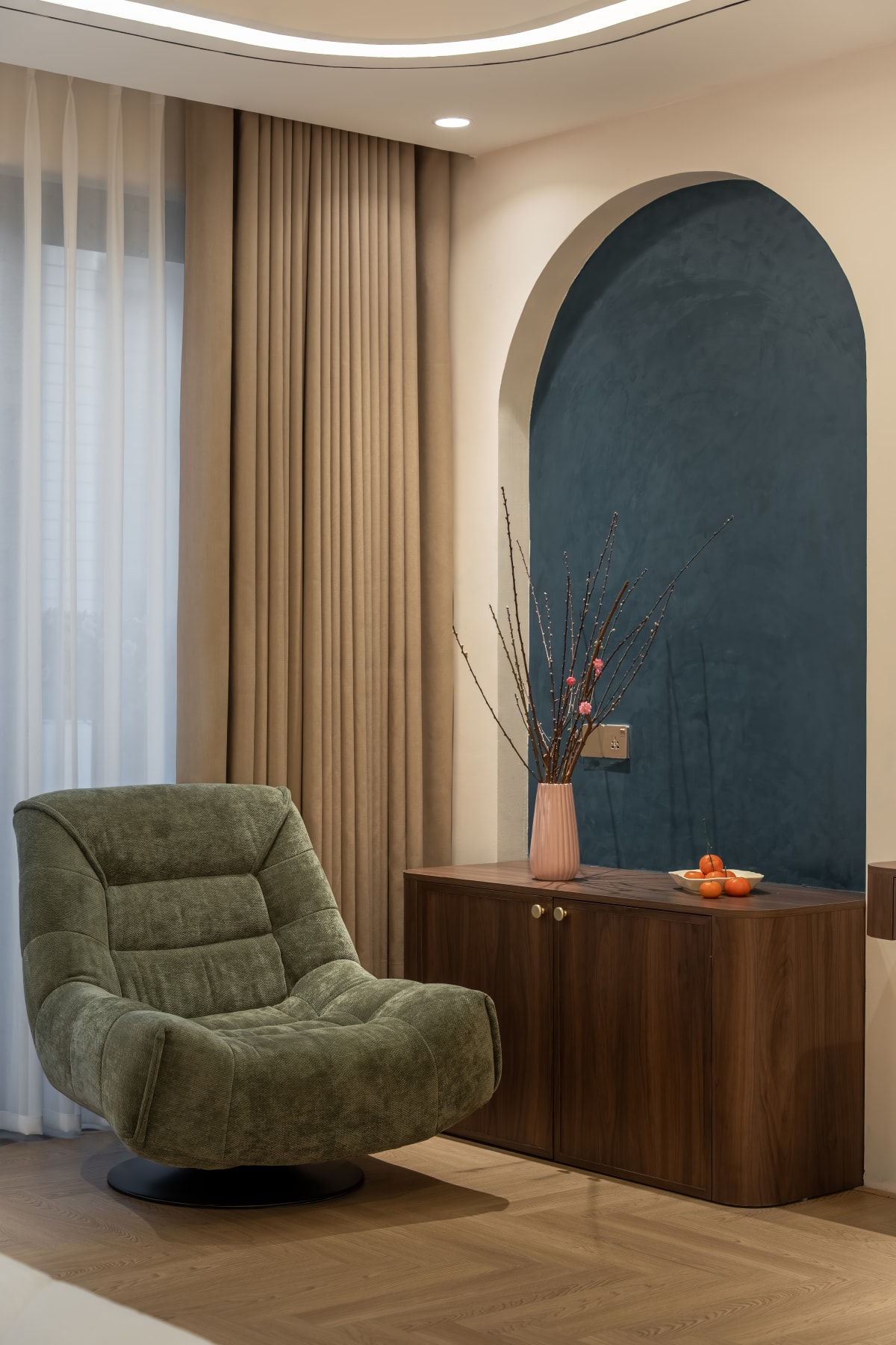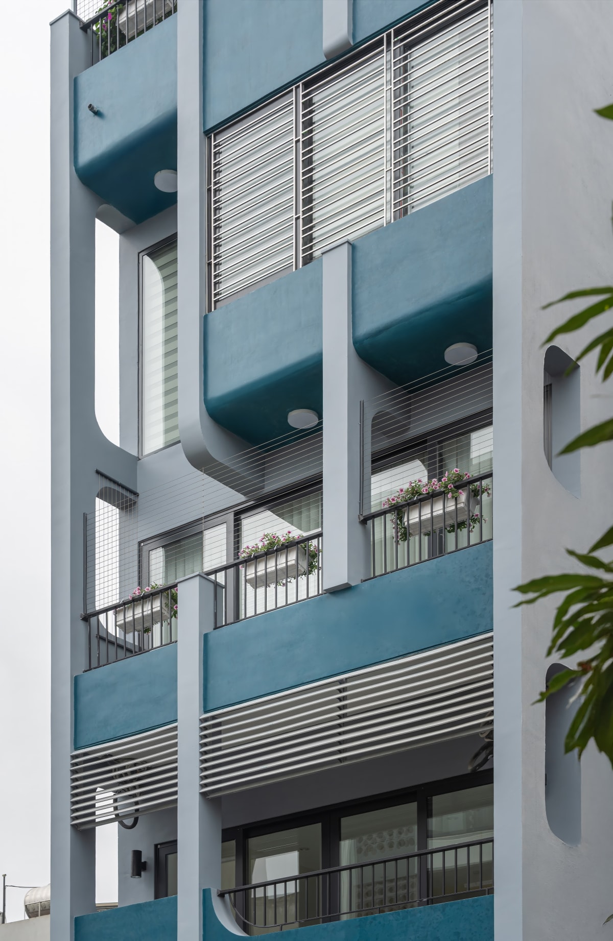 Căn nhà giải bài toán riêng tư và thông thoáng bằng hệ mặt đứng nhiều lớp, trong khi nội thất dùng đường cong, vật liệu tự nhiên để làm mềm không gian sống.