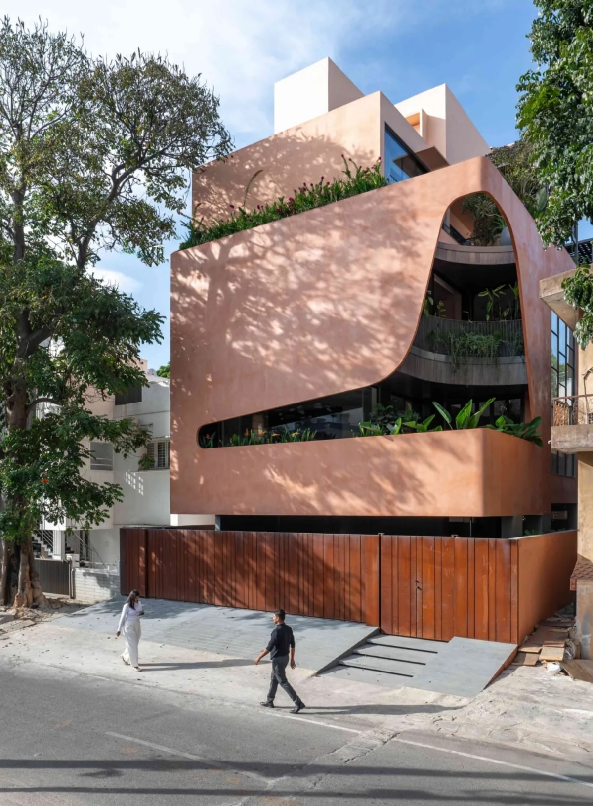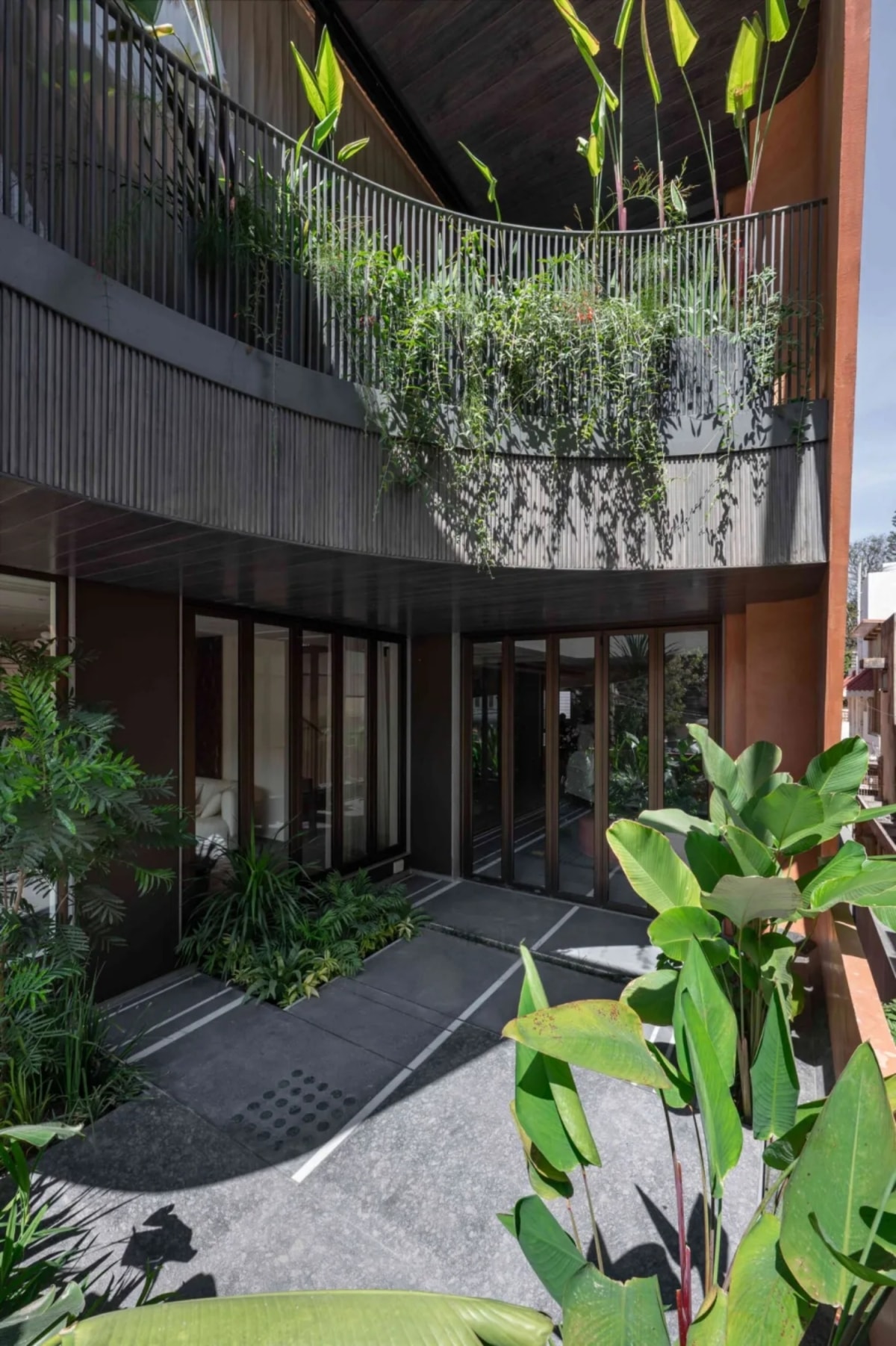 Nhà phố 640 m2 giảm nhiệt nhờ lớp 'vỏ' cong và vườn cây xen kẽ