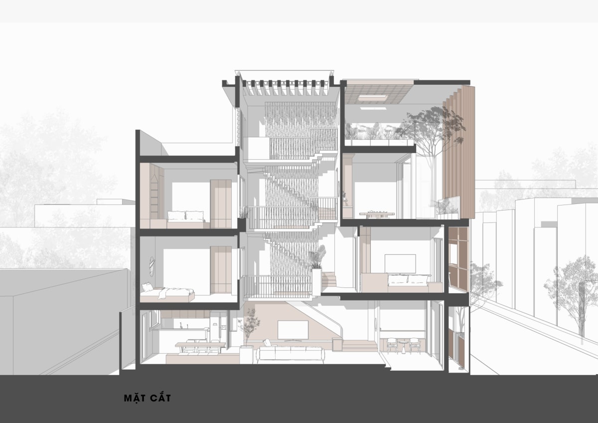 Nhà phố 83 m2 thiết kế mở cho gia đình đông con