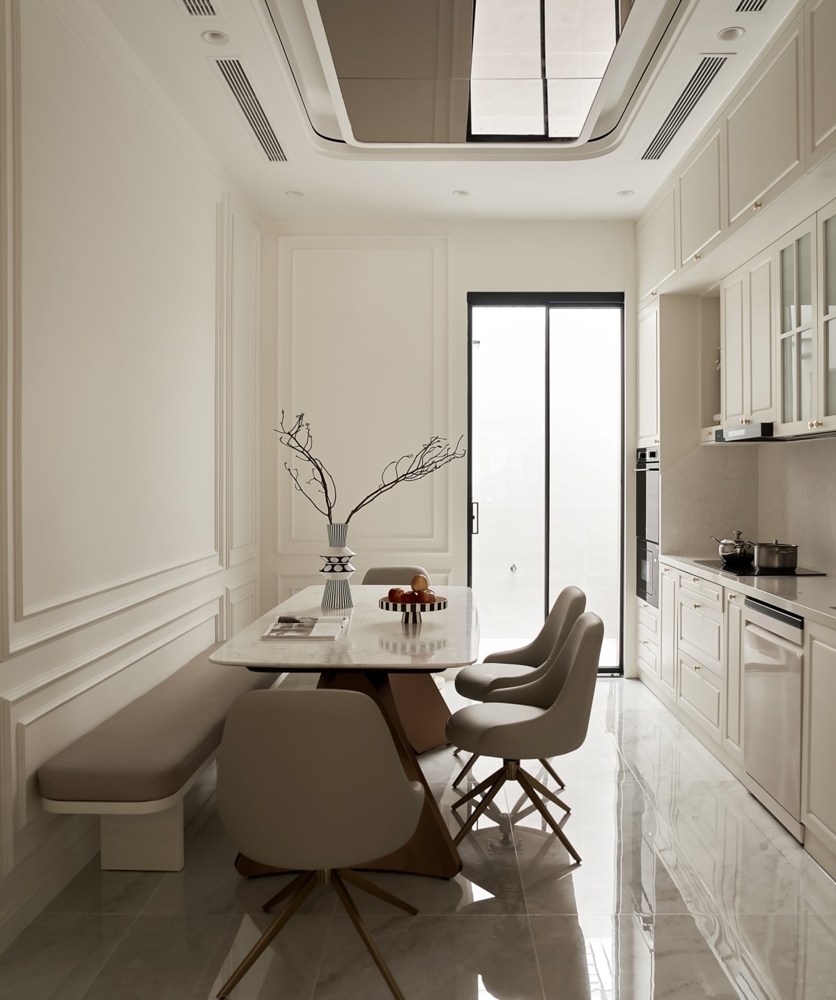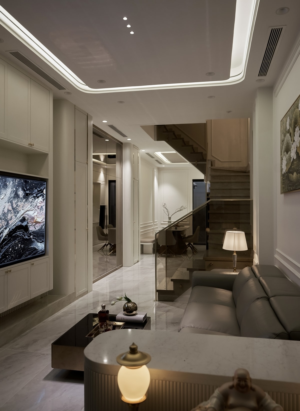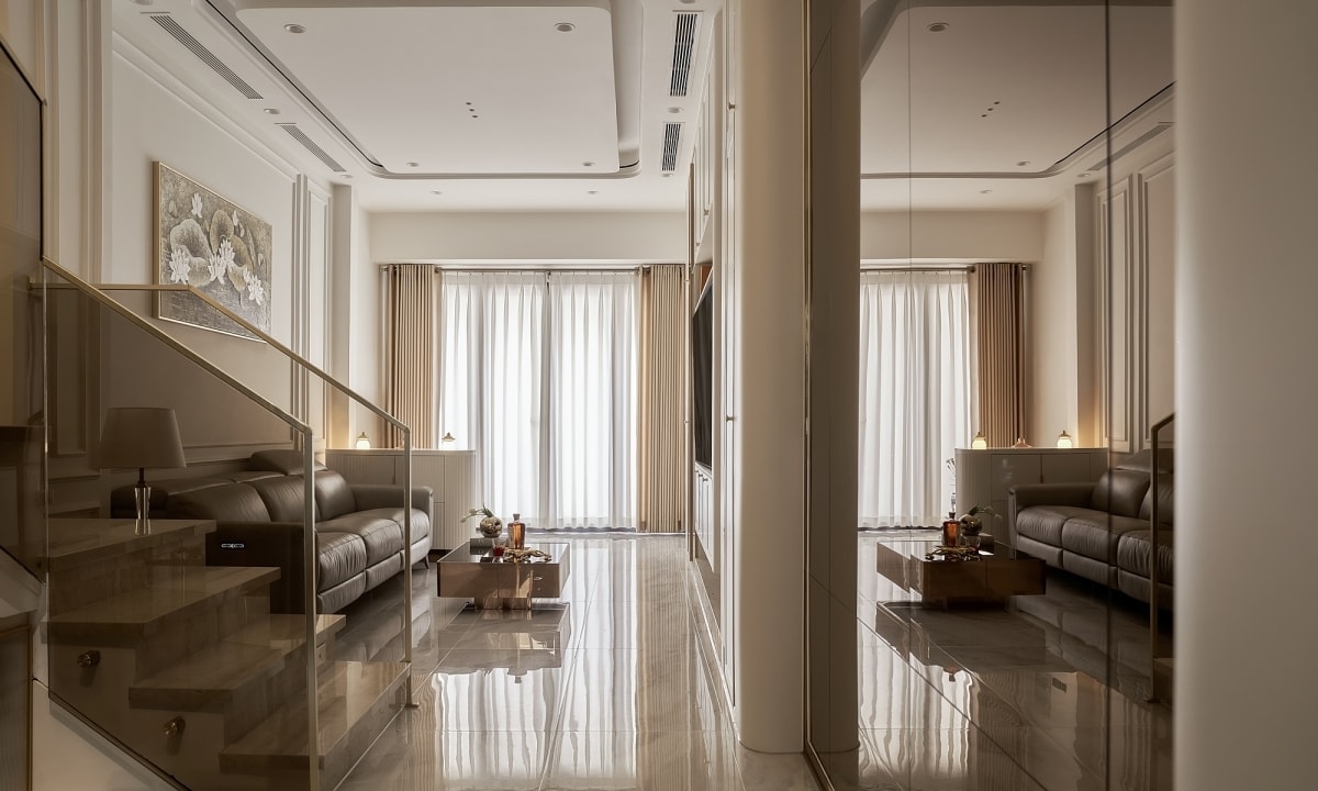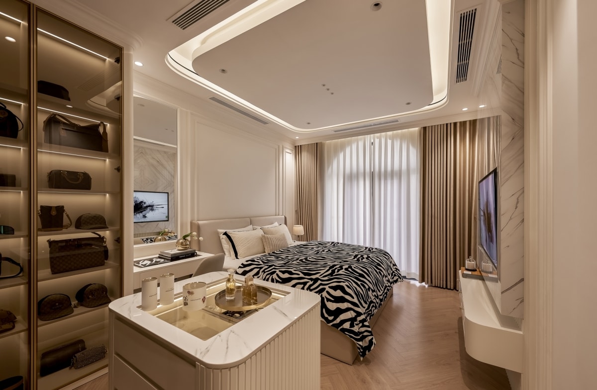 Công trình nhà phố 4 tầng áp dụng phong cách tân cổ điển trên mặt bằng hẹp, tập trung vào tổ chức không gian và kiểm soát chi tiết nội thất.