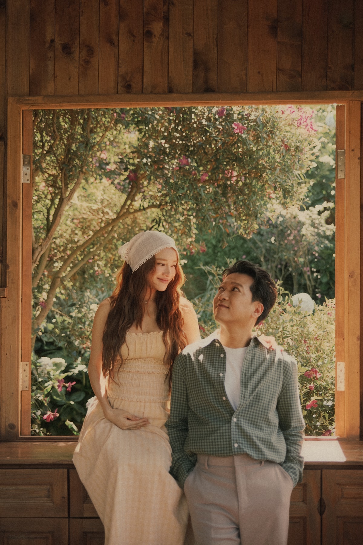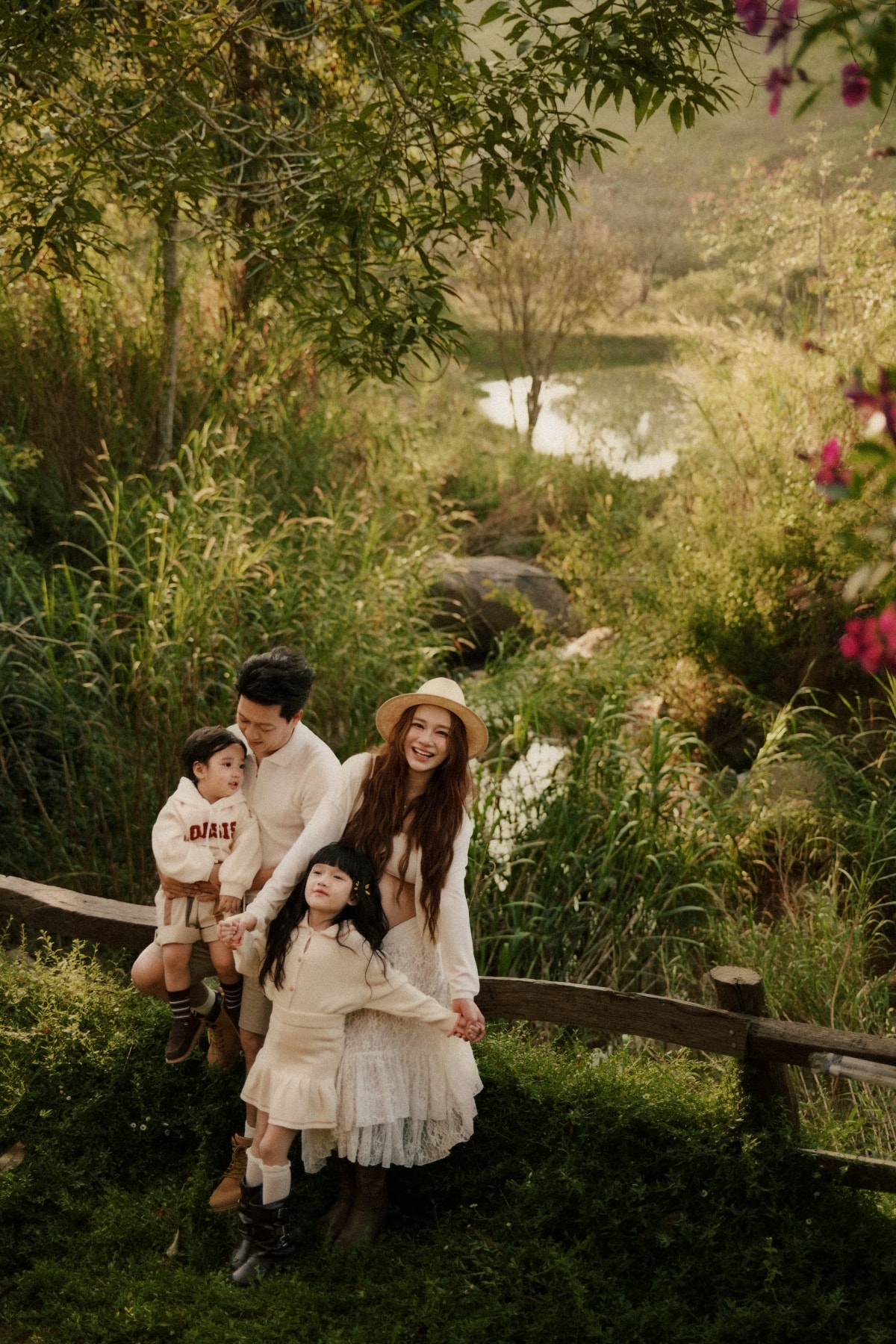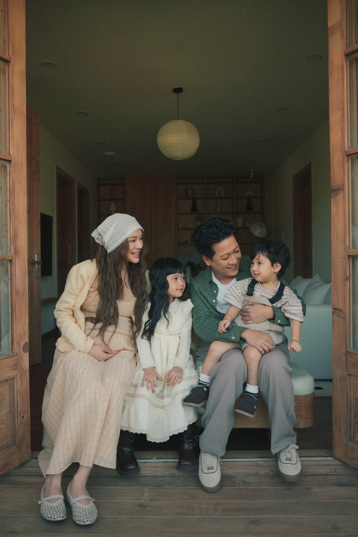 Diễn viên Nhã Phương bế bầu tháng cuối chụp ảnh kỷ niệm cùng Trường Giang và các con tại nhà vườn hơn 100 m2 ở Đà Lạt.