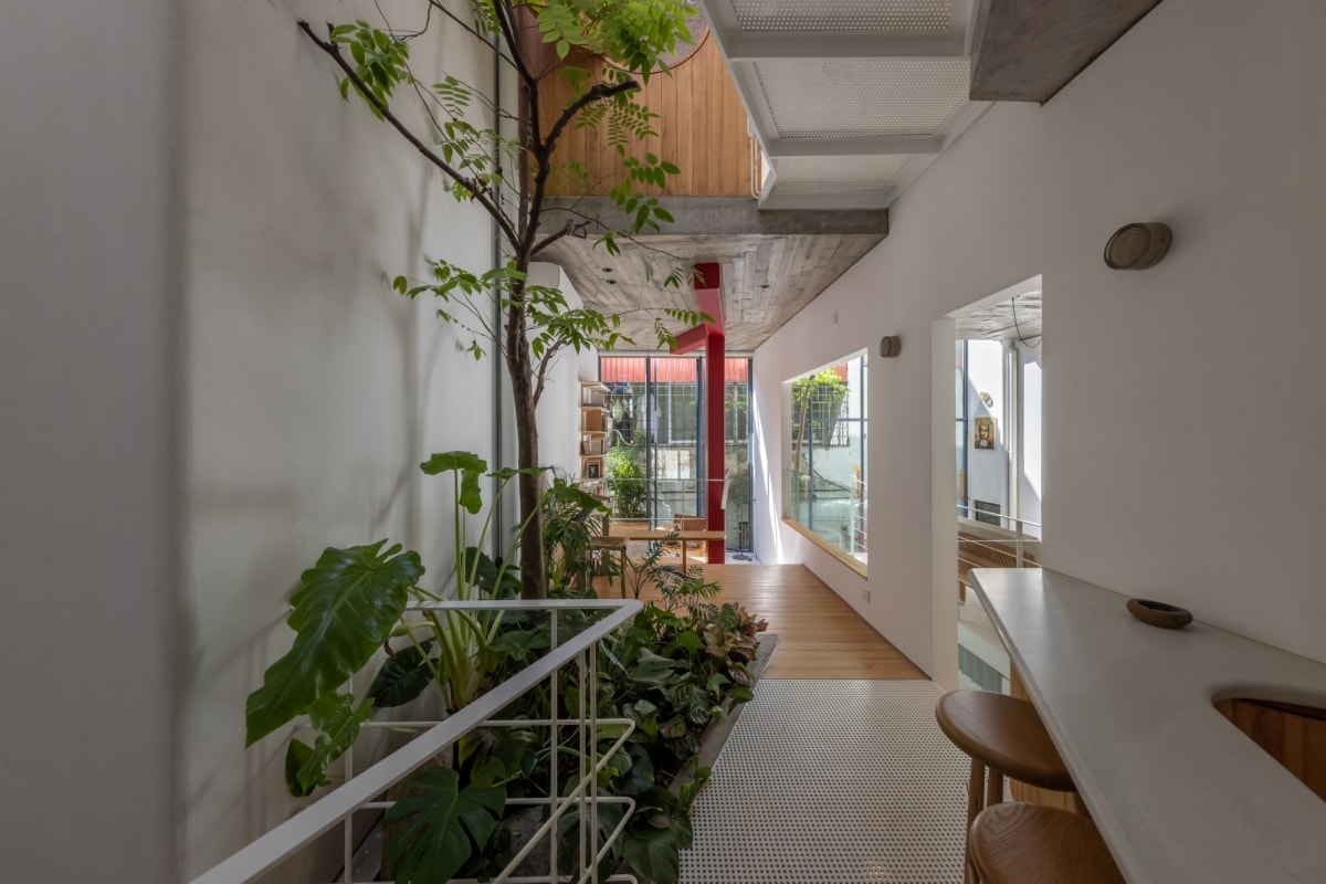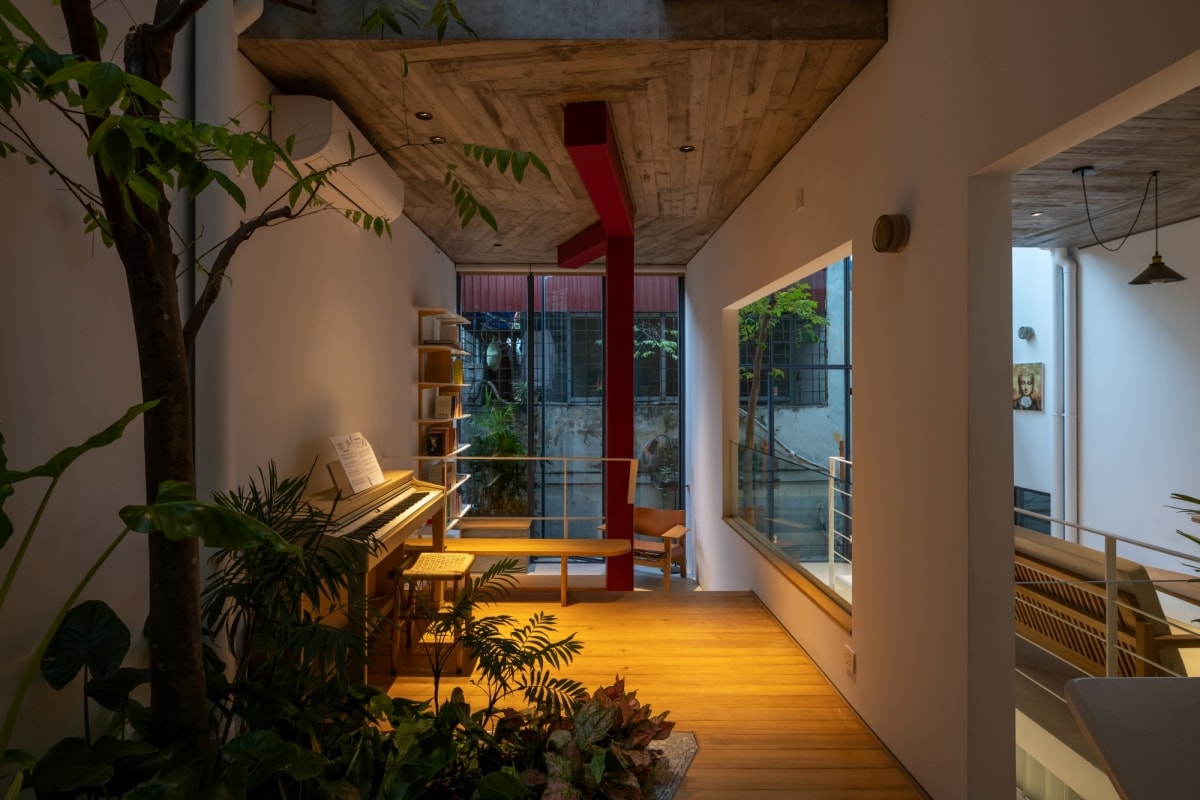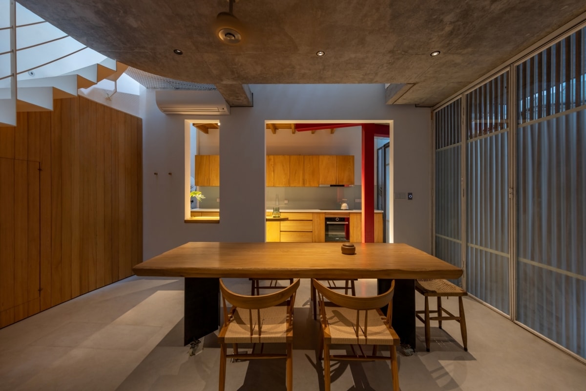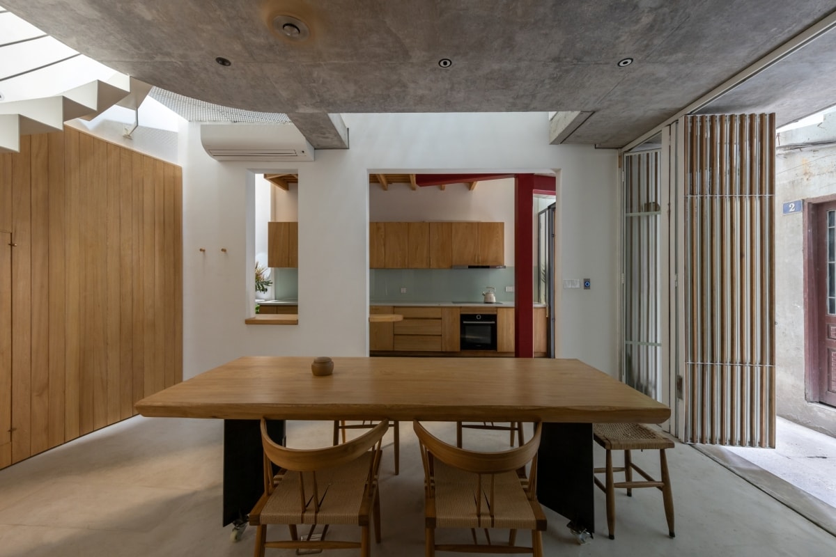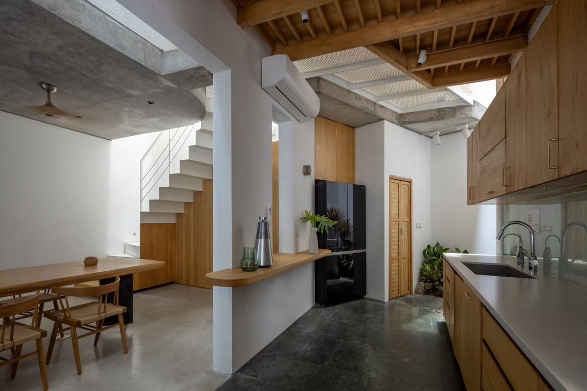 Công trình tổ chức không gian theo chiều đứng, tận dụng kết cấu hợp lý để cải thiện ánh sáng, thông gió và kết nối sinh hoạt gia đình.
