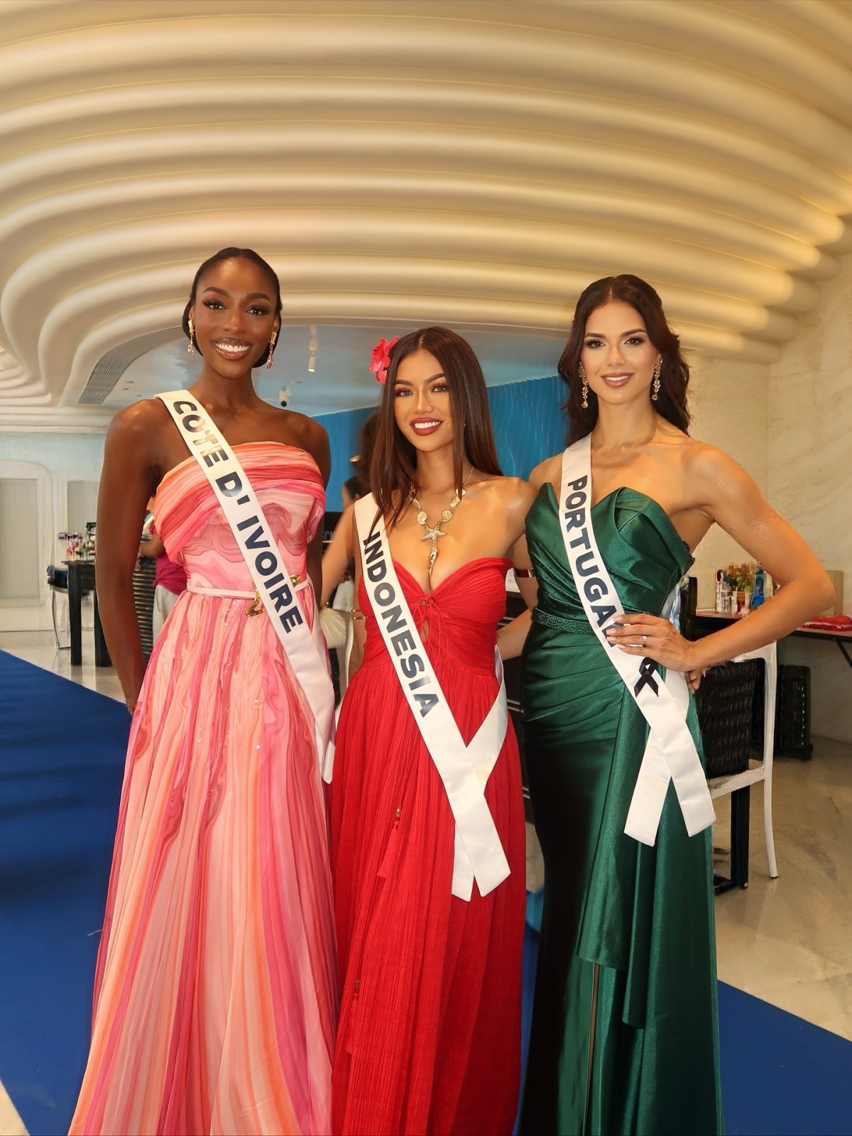 Tại chung kết cuộc thi sáng 21/11, Olivia Yacé (thứ hai từ phải sang) về đích với danh hiệu á hậu 4. Dự buổi tiệc cùng ngày, cô nhận thêm danh hiệu Miss Universe Africa & Oceania (Hoa hậu Hoàn vũ châu Phi và Đại Dương).