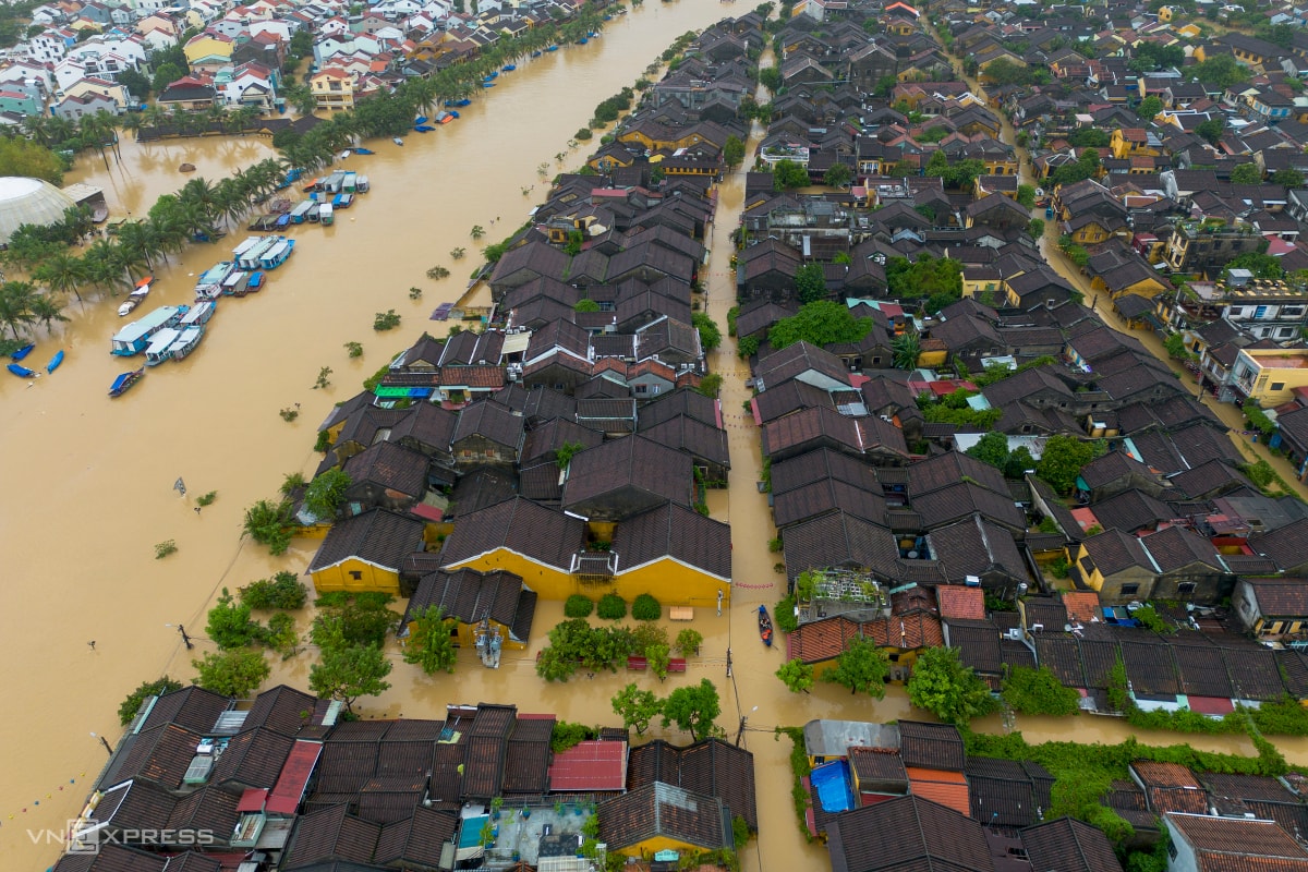 Ngày 29/10, Đà Nẵng mưa xối xả, thủy điện thượng nguồn tiếp tục xả với lưu lượng 1.300-3.000 m3/s, bằng với lưu lượng nước về hồ khiến lũ vùng hạ du sông Vu Gia - Thu Bồn tiếp tục lên. Phố cổ Hội An ven sông Hoài ngập hơn 2 m, nhỉnh hơn hôm qua khoảng 0,2-0,3 m.