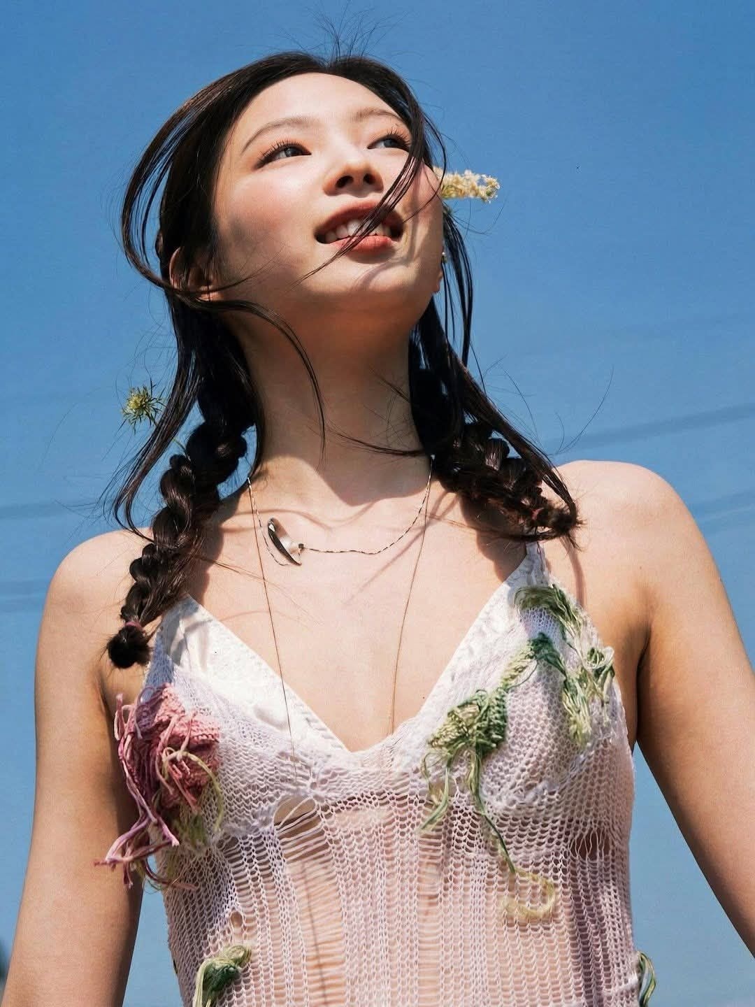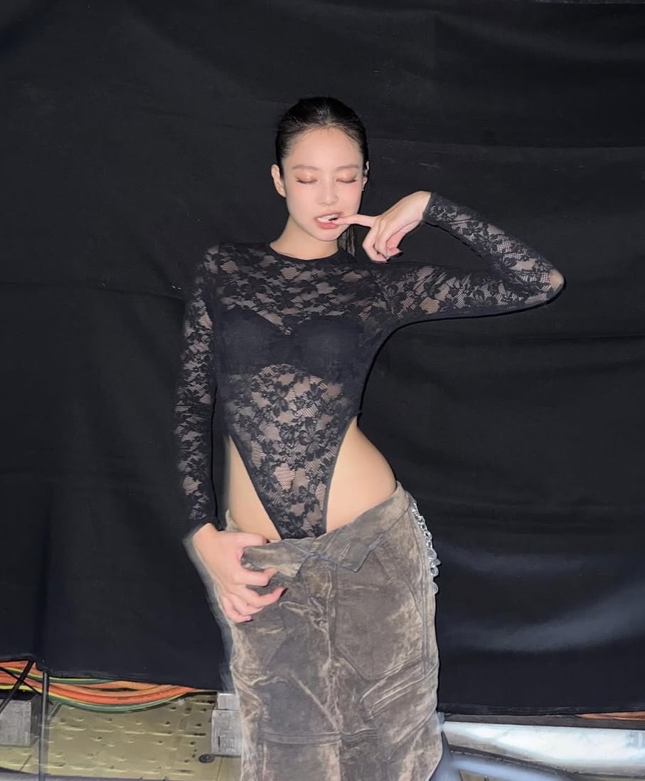 Ca sĩ Jennie nhóm Blackpink được khen khéo kết hợp mốt nội y với váy áo để tạo phong cách quyến rũ.