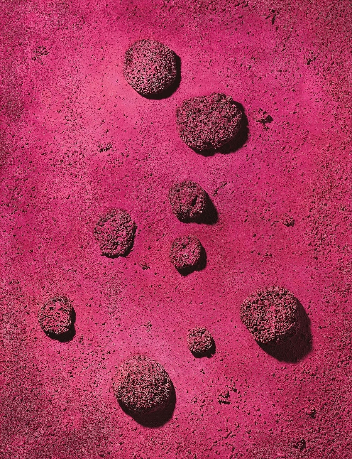 Ngoài ý tưởng dùng người làm "cọ sống", Klein nổi tiếng với những bức đơn sắc gắn bọt biển tự nhiên và đá cuội lên bề mặt tranh. Năm 2022, nhà đấu giá Phillips bán bức Relief Éponge bleu sans titre (RE 49) với giá gần 20 triệu USD. Ảnh: Phillips