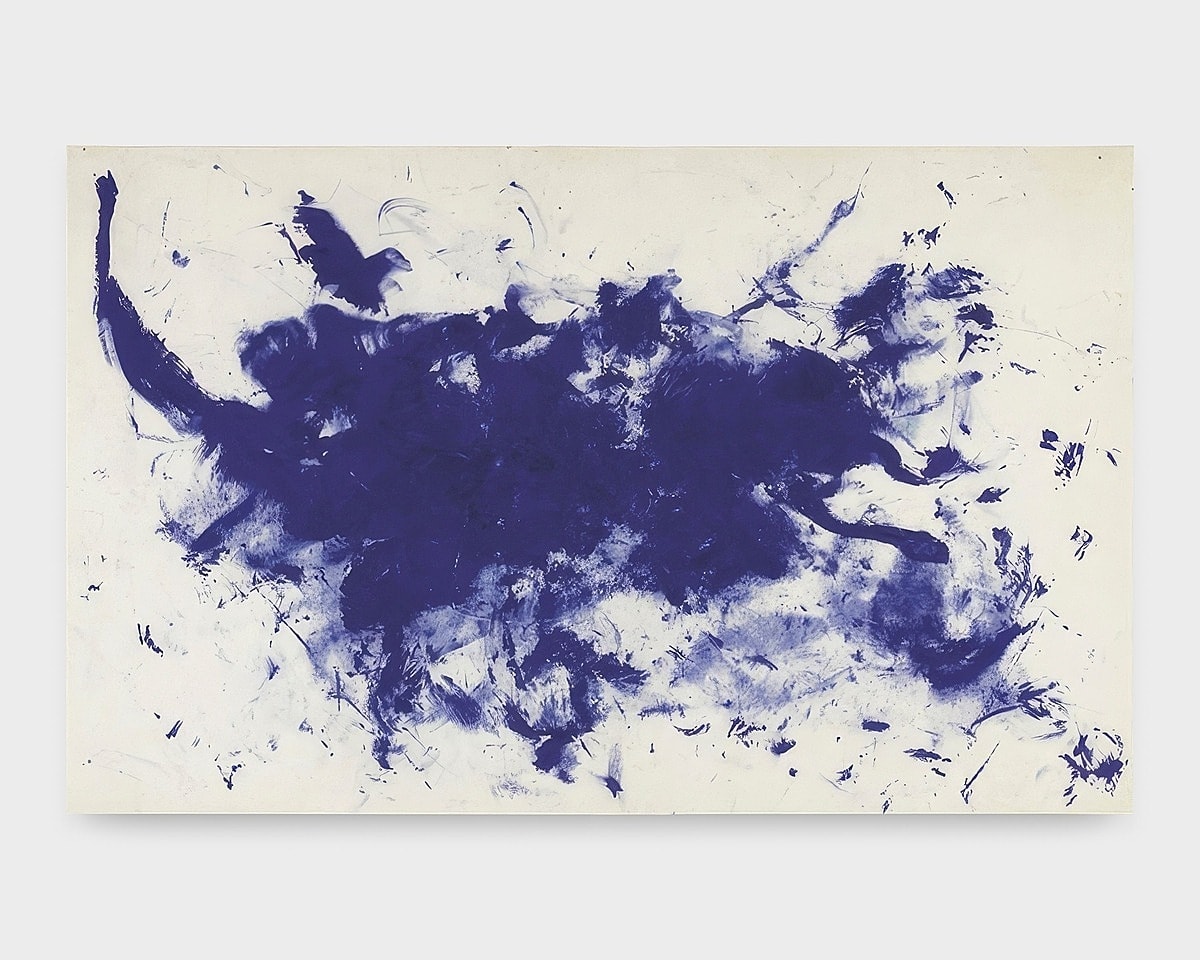 Tác phẩm trong buổi chào bán tranh Yves Klein năm 2022. Cũng trong phiên đấu giá, Phillips thu về hơn 2,7 triệu USD cho bức chỉ có màu xanh - Monochrome bleu sans titre (IKB 267). Video: Phillips