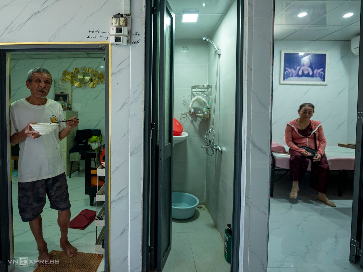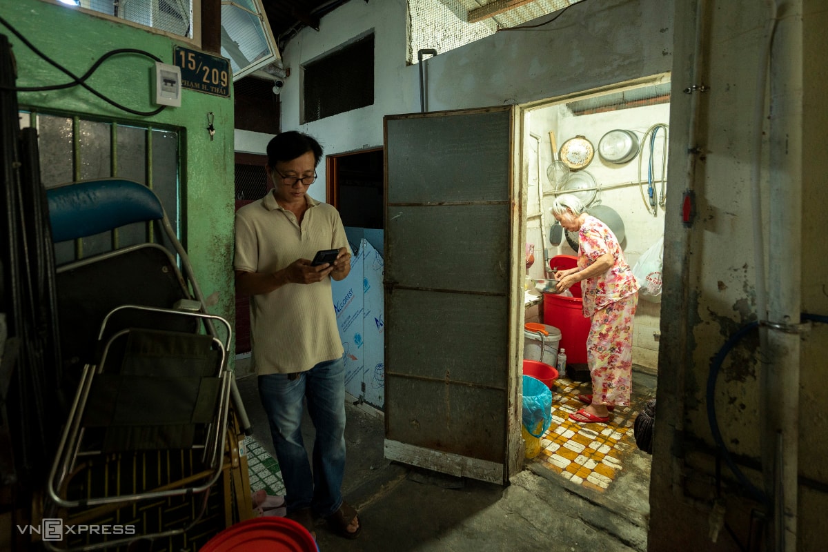 Anh Nguyễn Sơn Hà, 49 tuổi, cho biết tường gỗ xuống cấp, không gian chật hẹp, dây điện chằng chịt, bếp nấu tạm bợ khiến nguy cơ hỏa hoạn luôn thường trực. Khu vực từng xảy ra ba vụ cháy nhỏ, may mắn được phát hiện và khống chế kịp thời.