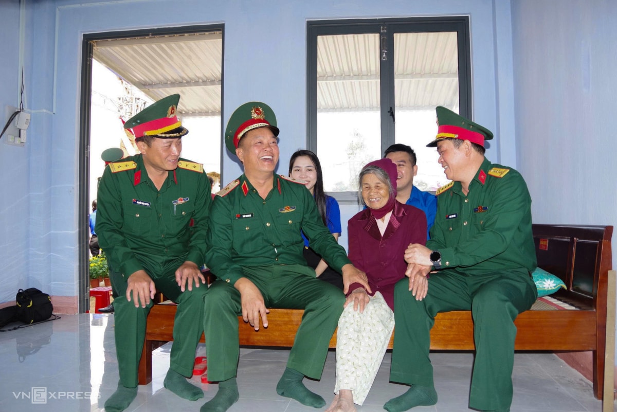 Thiếu tướng Trần Thanh Hải (thứ 2 từ trái qua), Phó tư lệnh Quân khu 5, trong đợt bàn giao căn nhà mới cho bà Trương Thị Thiêu, phường Hòa Hiệp, ngày 10/1.