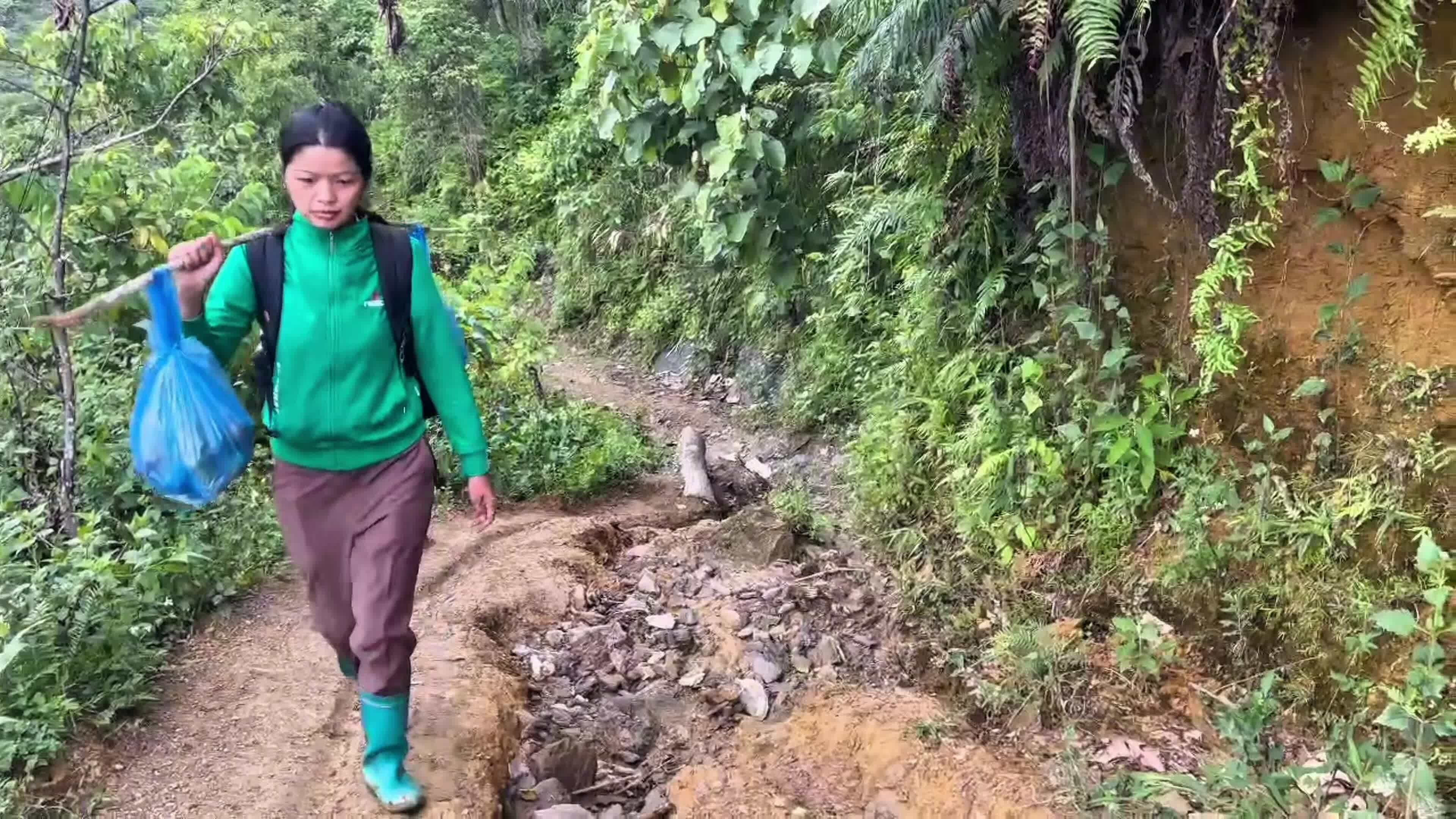 "Để đồ ăn đến nơi nguyên vẹn không dễ. Nhiều đoạn tôi phải gánh trên vai hoặc xách bộ 6-7 km, mất gần hai tiếng", cô giáo chủ nhiệm lớp ghép 3-5 tuổi, cho biết.