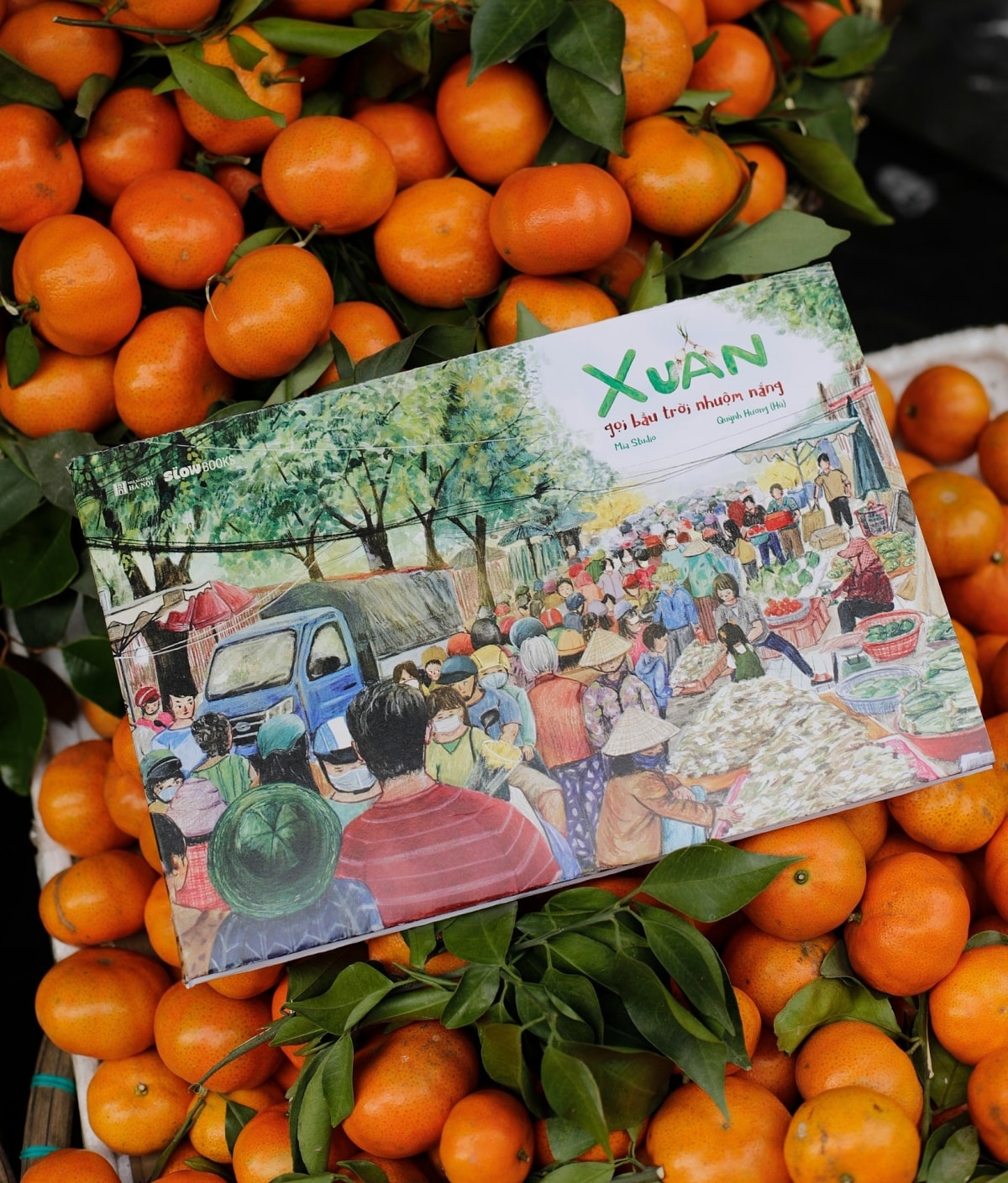 Tác phẩm Xuân gọi bầu trời nhuộm nắng của tác giả Quỳnh Hươngkể câu chuyện một bé gái từ vườn mùi già trở về nhà, mang theo một bó tặng mẹ để chuẩn bị cho phong tục tắm lá mùi trong ngày 30 Tết. Trên đường, em gặp Ốc sên bé - người bạn nhỏ chưa từng hiểu vì sao Tết lại phải về nhà, ở bên gia đình. Bé đã kể cho bạn về ý nghĩa của Tết, những phong tục quen thuộc, giây phút quây quần bên người thân dịp năm mới.